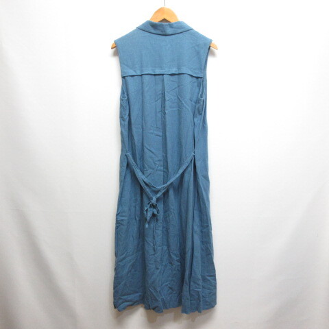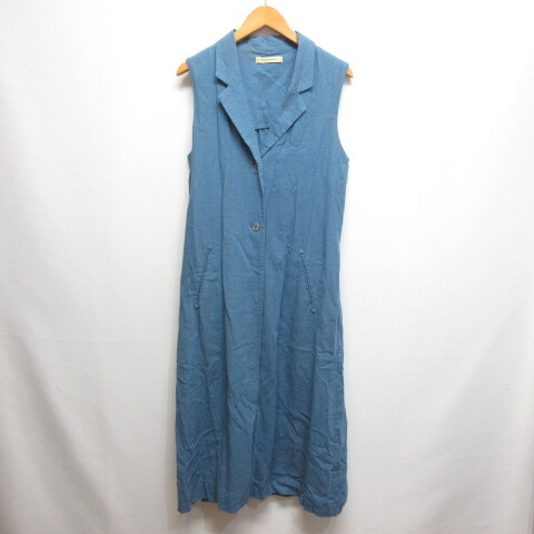 ローズバッド ROSE BUD 麻リネン混 ロング ジレ ベスト F ブルー ジャケット 腰ひも付き レディース