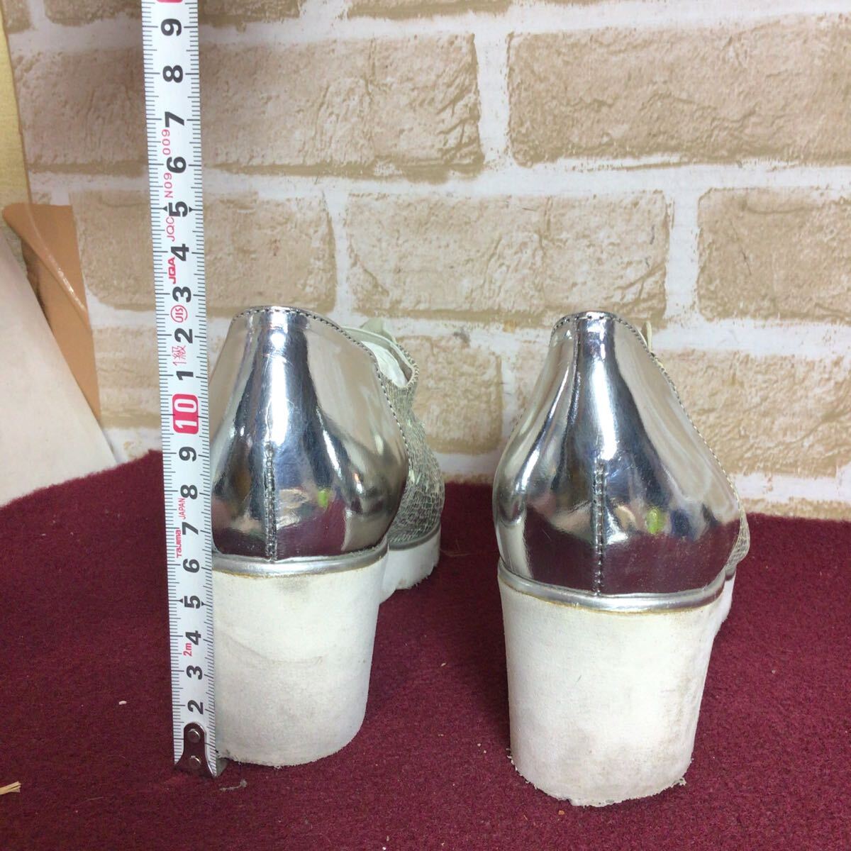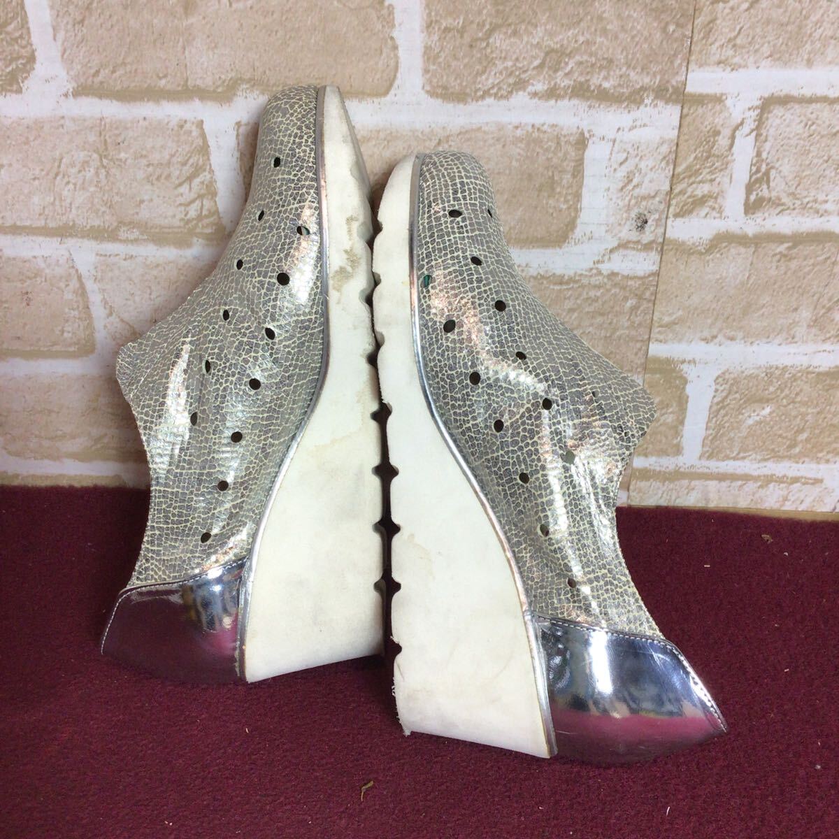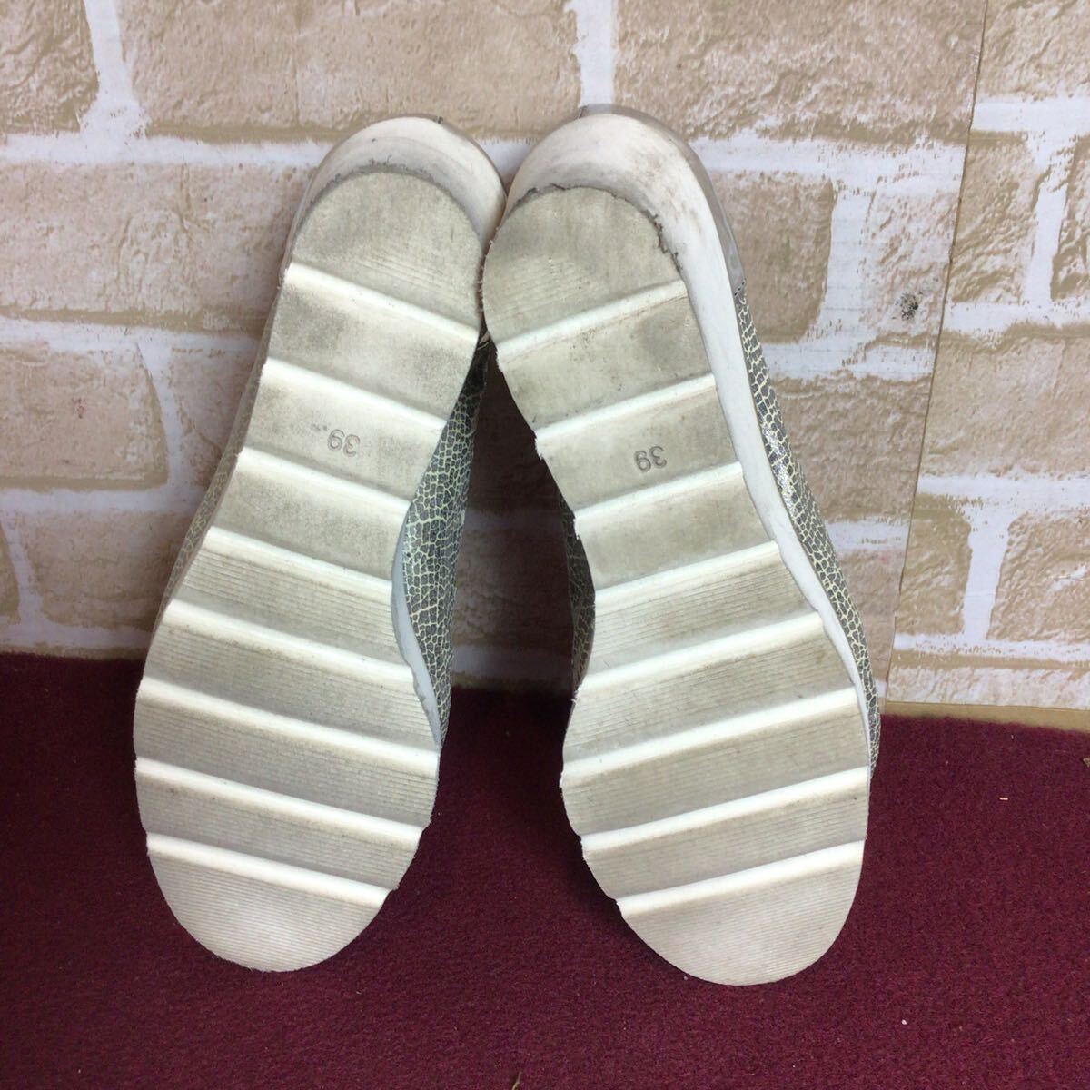 【売り切り!送料無料!】A-322 Perlato!ウェッジソールシューズ!シルバー!サイズ39!スリッポン!おしゃれ!着脱楽!足長効果!中古!