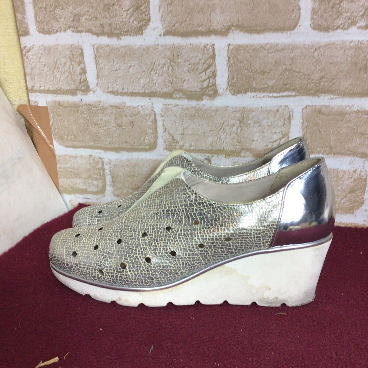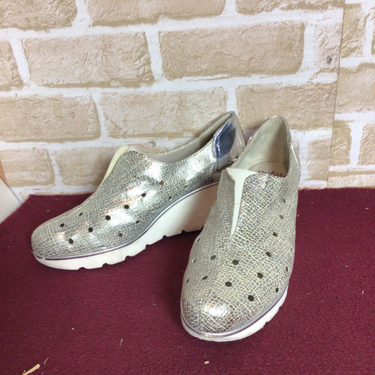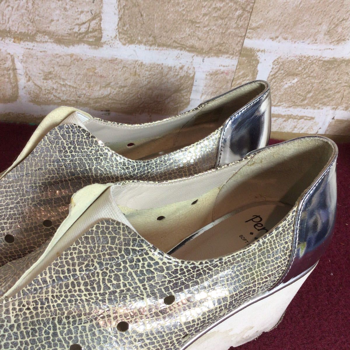 【売り切り!送料無料!】A-322 Perlato!ウェッジソールシューズ!シルバー!サイズ39!スリッポン!おしゃれ!着脱楽!足長効果!中古!