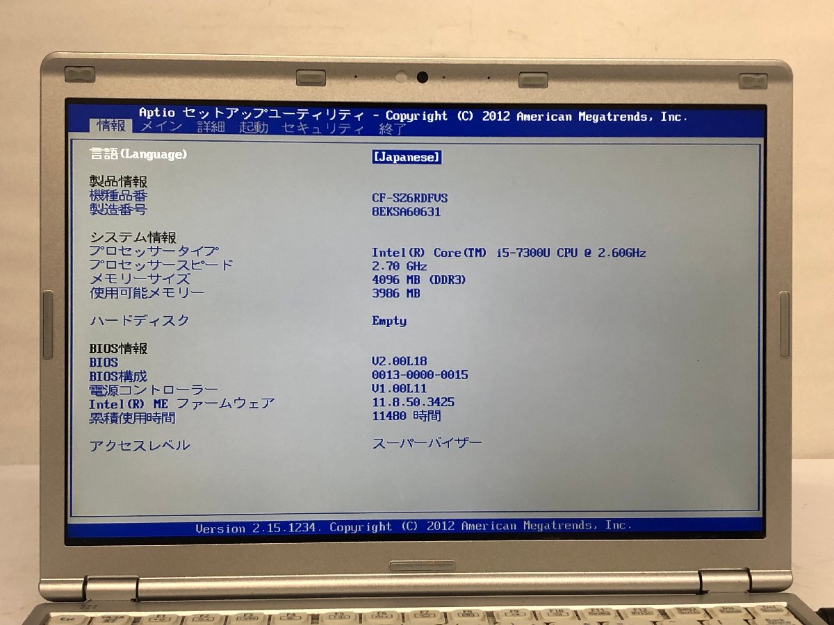 ジャンク/ Panasonic CF-SZ6RDFVS Intel Core i5-7300U メモリ4.1GB ストレージ無し 【K17135】