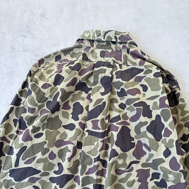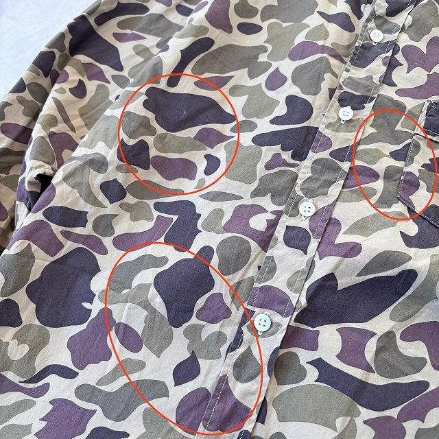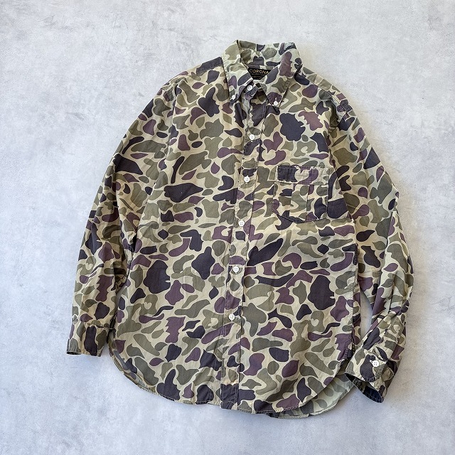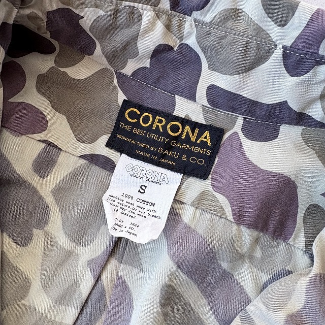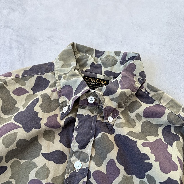 訳あり CORONA コロナ 日本製 長袖 カモフラ 迷彩 プリント ボタンダウン B.D シャツ camo メンズ(S) 緑 茶 / r-701