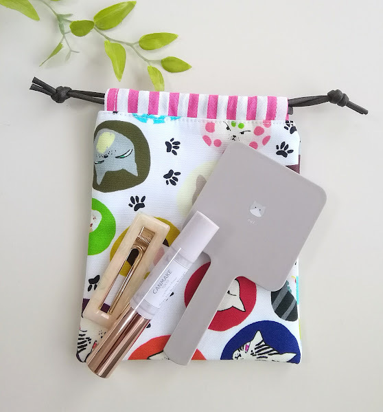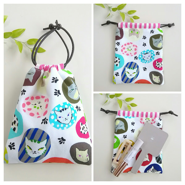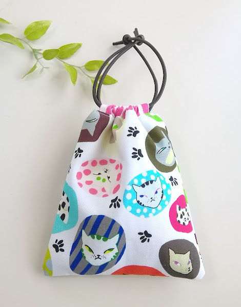 ハンドメイド ミニ巾着  カラフルポップキャット*猫柄 (12.5×16)
