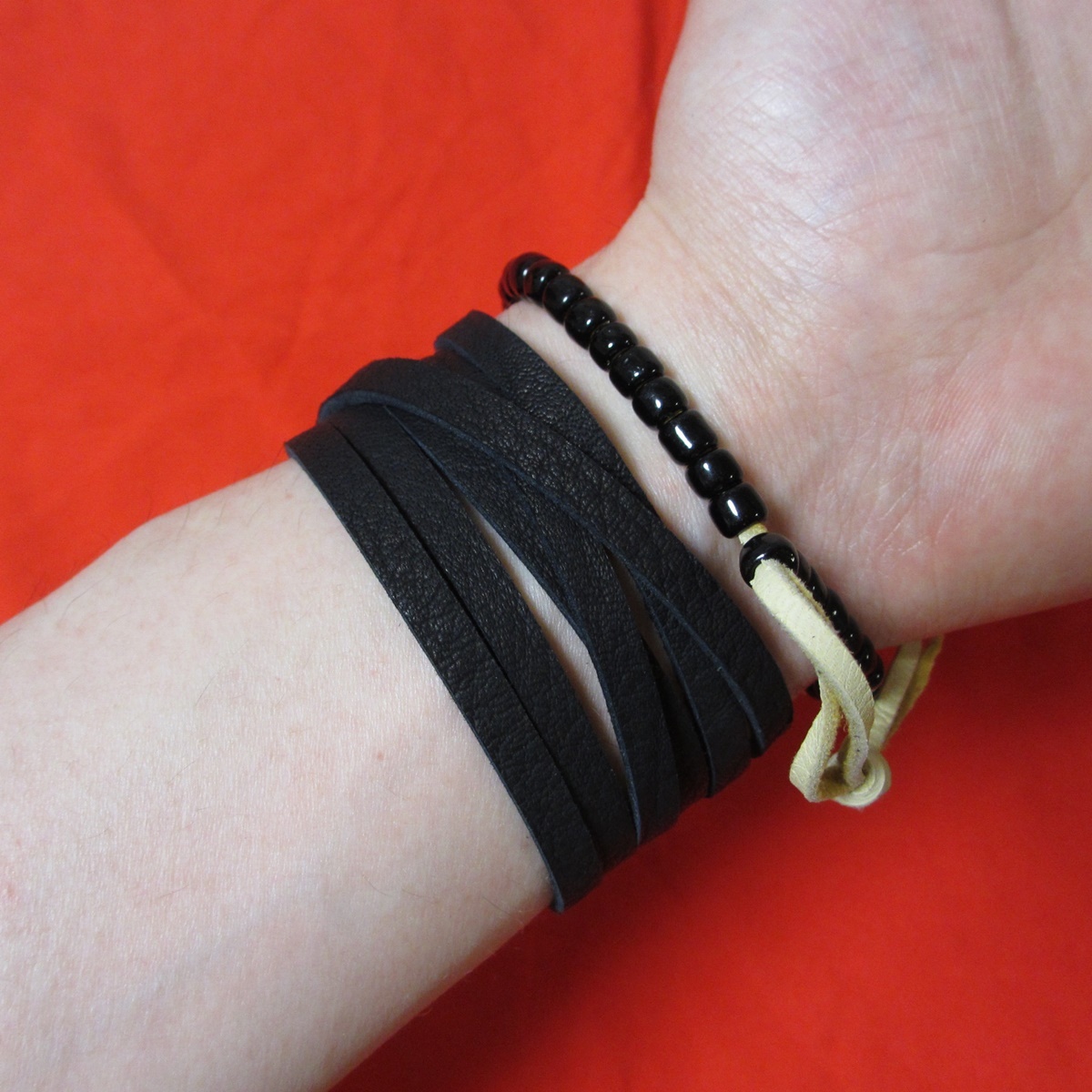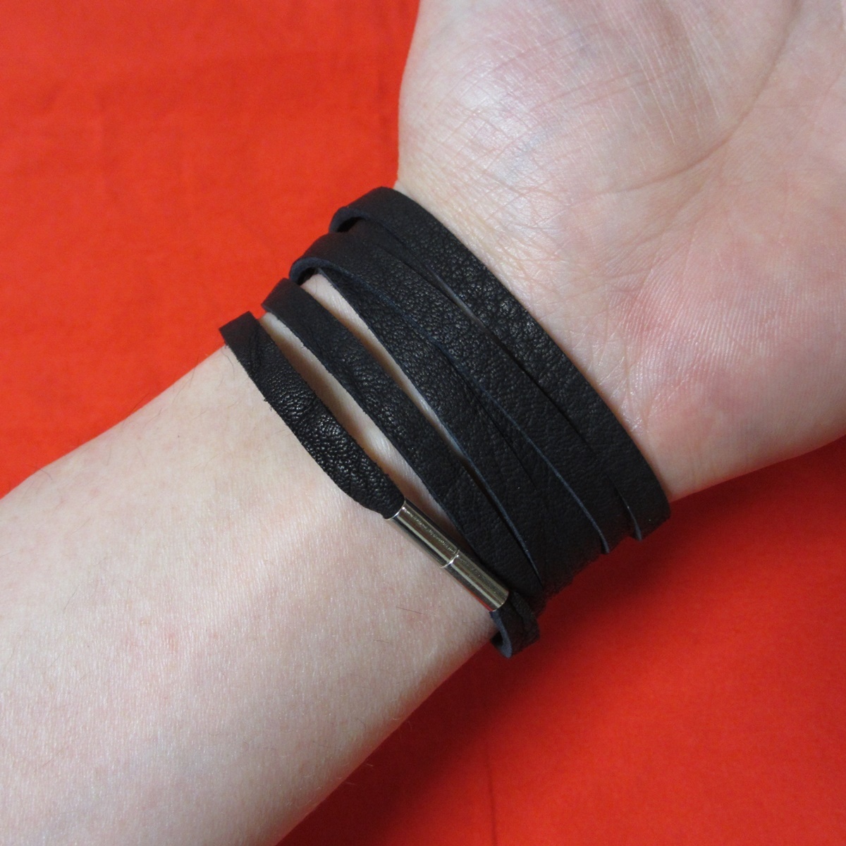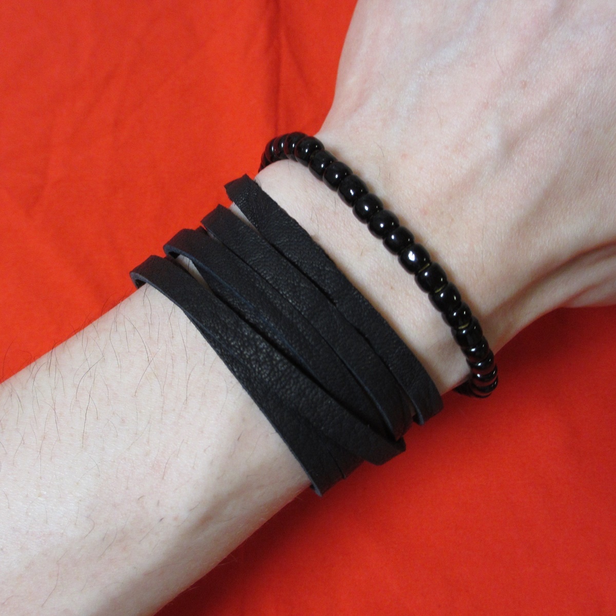 ほとんどの方に合うサイズで、細め~標準の男性17-18cmの手首で6周巻けます
