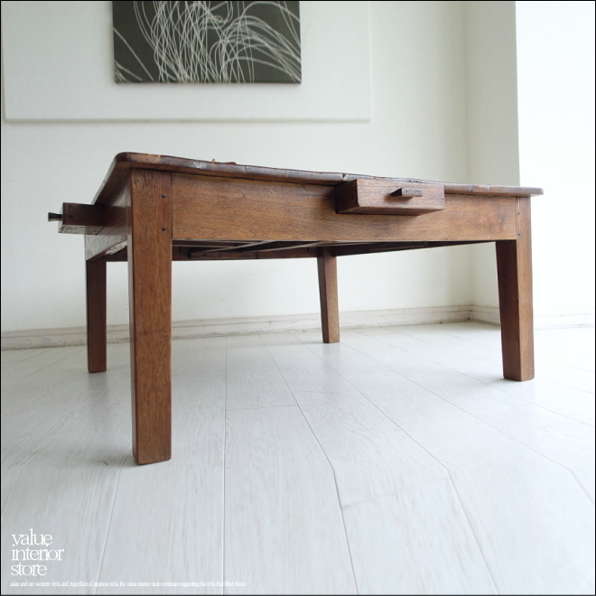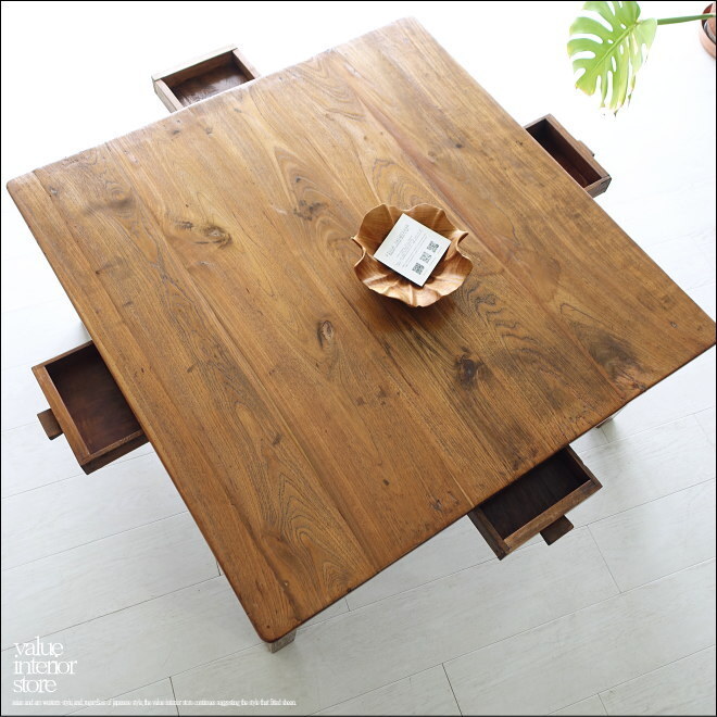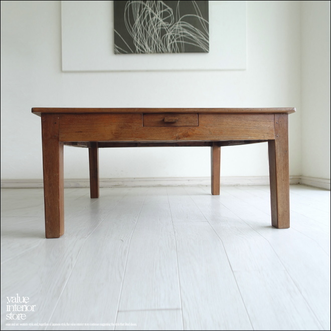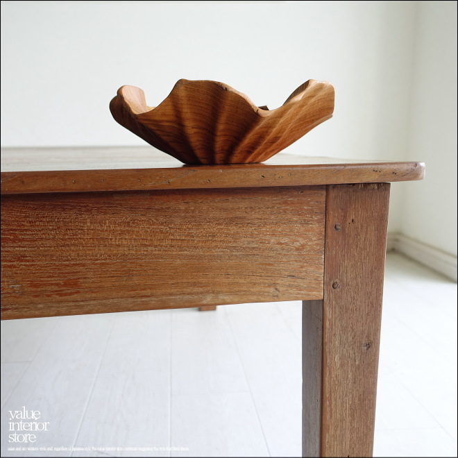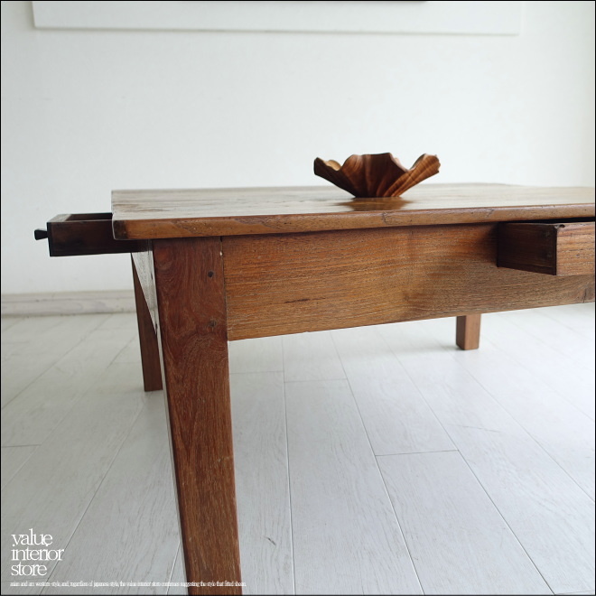 ■商品名 ヴィンテージコーヒーテーブルblade ( 再生家具 ) *こちらの商品は他サイトでも同時販売を行っておりますため、ご注文が重なりました場合、販売をさせていただけないこともございますので、その際はご容赦いただきますよう何卒お願い申し上げます。 ■商品説明 チーク材独特の色合いを一層引き立たせる飴色の光沢に表面を仕上げた再生家具のヴィンテージテーブル“blade”。古いものならではの渋く落ち着いた雰囲気が全体から感じられ、スローダウンした空間づくりにお役立ていただけます。 ◇再生家具(新しいものとして生まれ変わっています。) この商品は、表面再仕上げや欠損箇所の補修などをしているリメイク家具となります。元々の雰囲気は残して仕上げています。傷、ワレやフシ穴、落書き痕、色の濃淡、傾き、歪み、反り、汚れなどがございますが、素材や古いものの持つテイストとしてご理解をいただきますようお願いいたします。 ◇チーク材は世界三大銘木の一つとして知られ、硬さと張りがあり良質の天然油分を適度に含むことから耐久性・収縮性の低さに優れています。特に細かな美しい木目が特徴で家具や建材など世界中で人気の高い木材です。 ◇チーク無垢材は人のお肌同様に、長時間、直射日光や冷暖房の風のあたる場所や湿気、乾燥が著しい場所を嫌います。反りや割れ、退色の原因になりますのでお避けください。 ■仕様 ・サイズ : W95cm×D93cm×H45.5cm 引出内径 : W18cm×D22cm×H4cm (サイズは、計る場所によって多少違いがございます。予めご了承下さい。) ・素材 : チーク総無垢材 ・生産国 : インドネシア ■備考 ◇この商品はその他商品と混載できません。 ◇掲載画像は十分配慮しておりますが、撮影時の光の反射や光量により明るさや色彩に違いがでますことや、素材の性質上、仕入れ時の材料によっても色味に多少濃淡がございます。また、ブラウザ上ではお色を正確に再現ができませんことを予めご了承下さい。 ◇商品はチークテーブル×1点です。その他はイメージです。 ◇アンティークの定義はございますが、本品は骨董価値があるという訳ではございません。再生処理もございます。 ◇この商品はギフト包装をお受けできません。 |