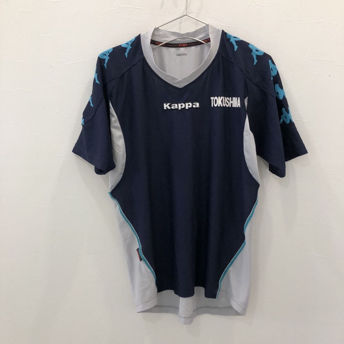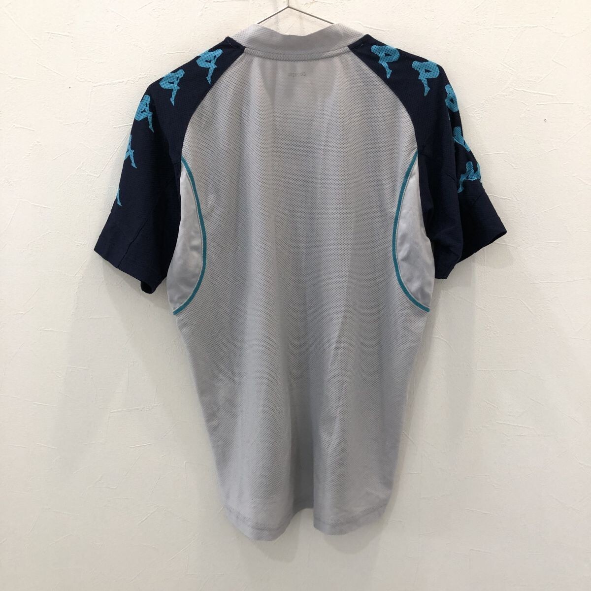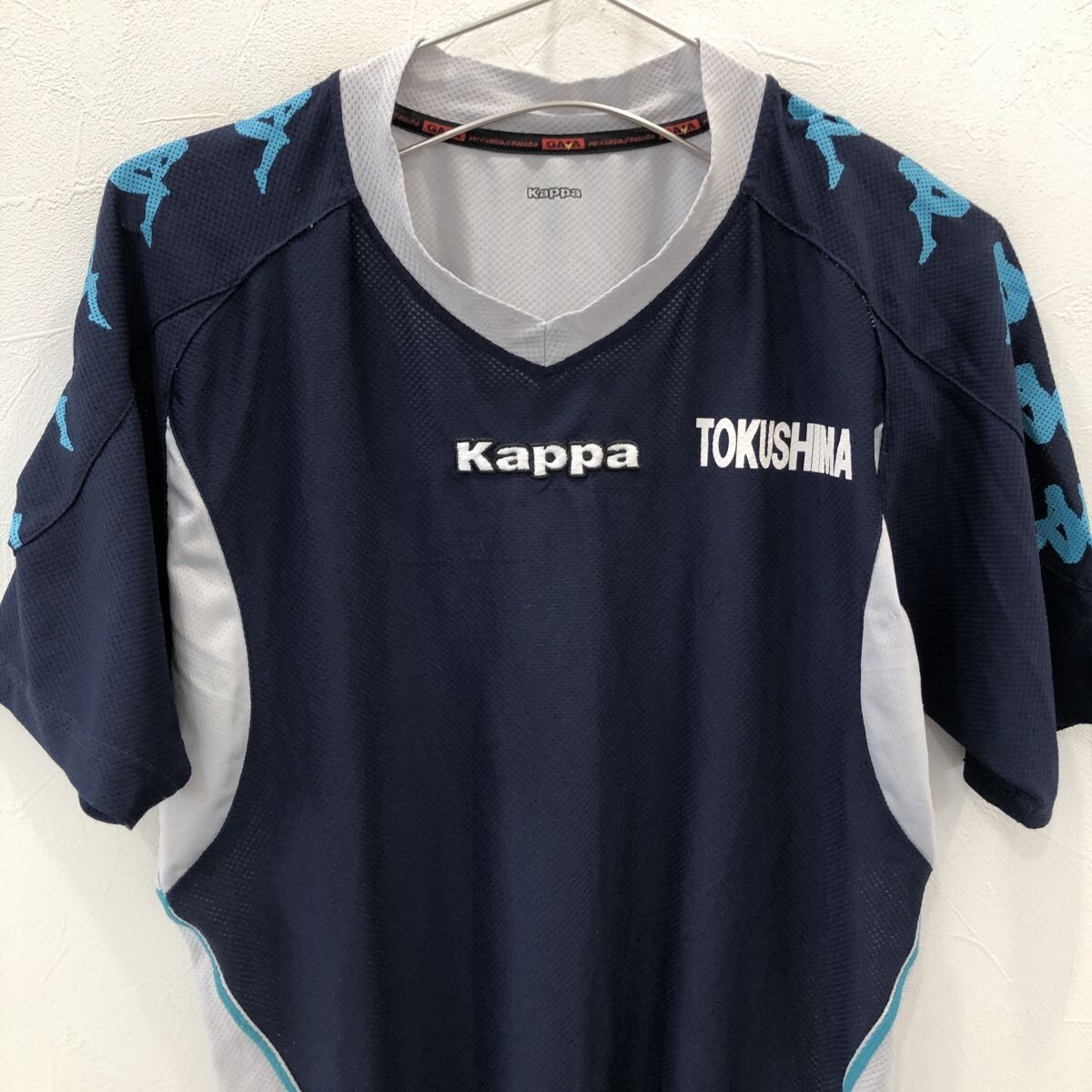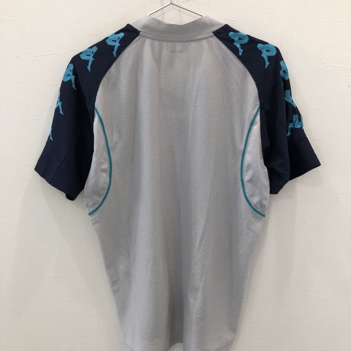 TNZ2351 実物 kappa 徳島 半袖 プラシャツ ネイビー グレー S