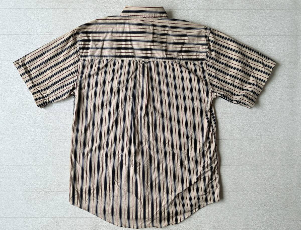 IVY CREW USA直輸入 古着 半袖 胸ポケット付き ストライプ ボタンダウン シャツ メンズ L ベージュ トップス 中古