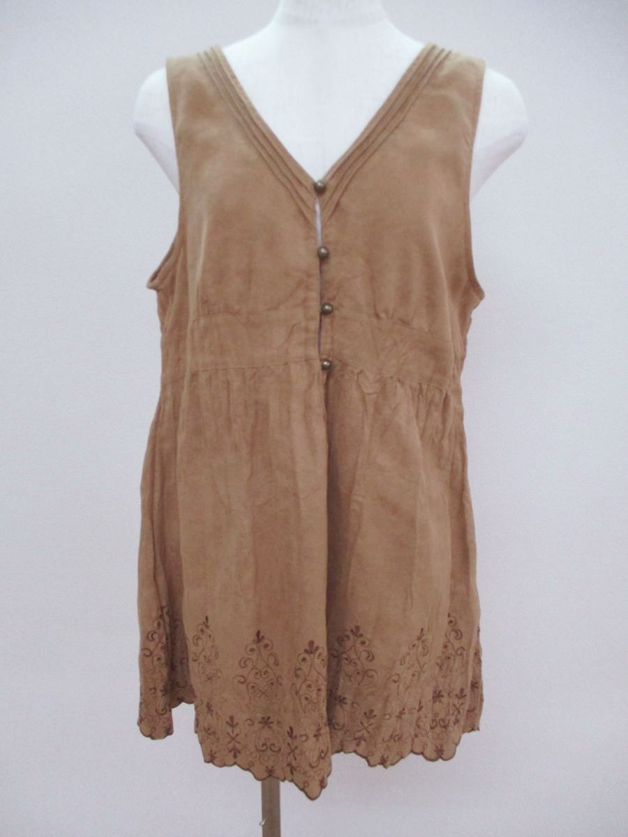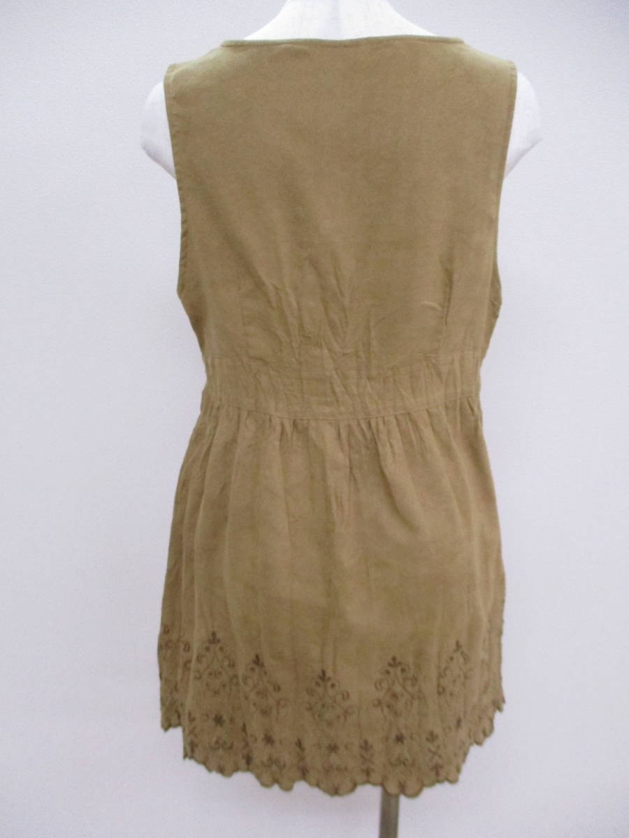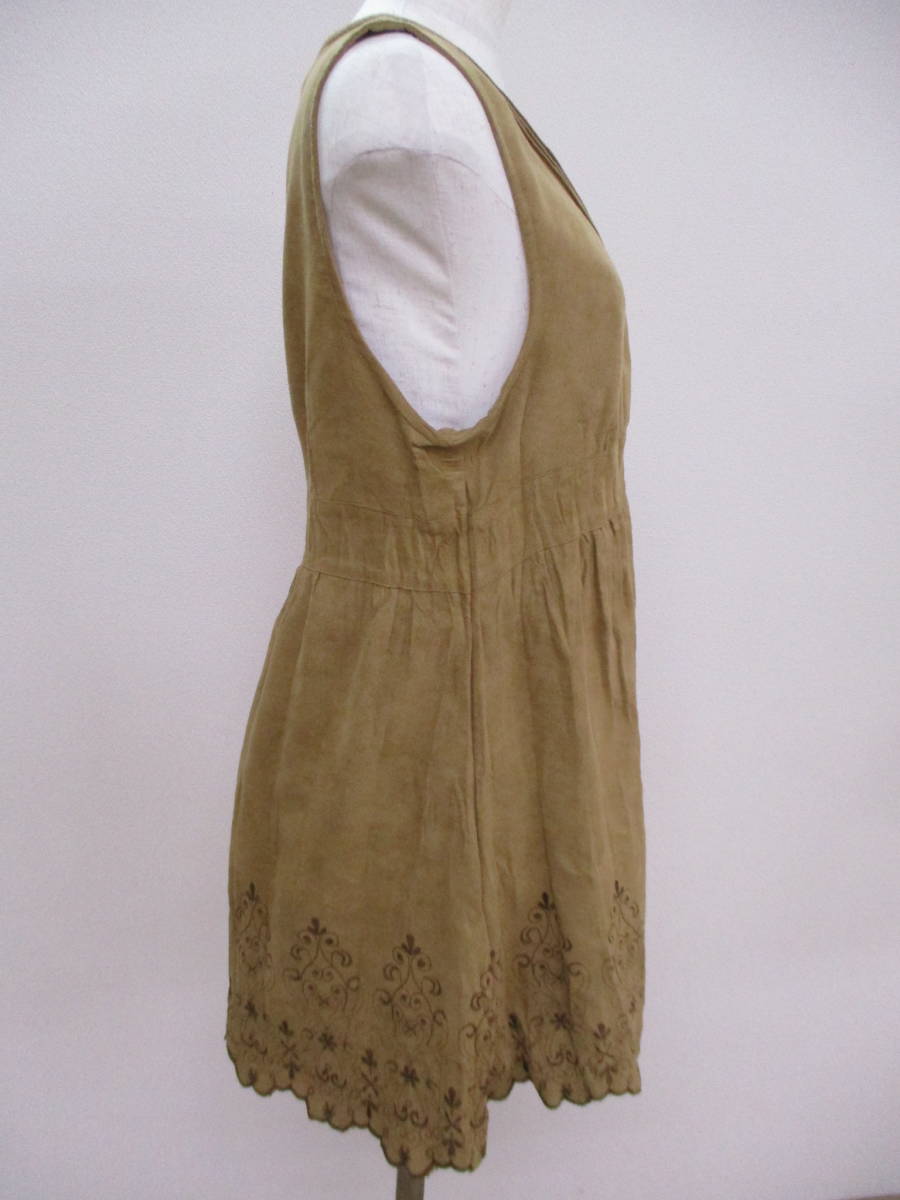 ☆1031【送料無料】Jasper minx ジャスパーミンクス ノースリーブ チュニック M キャメル Vネック 裾スカラップ 刺繍 スエード風 胸下切替