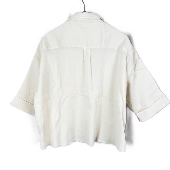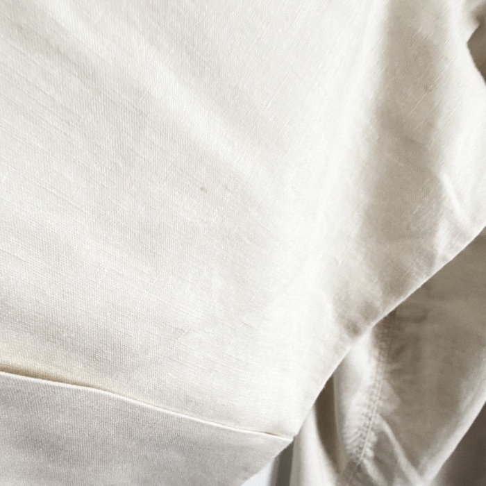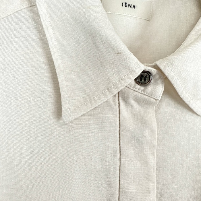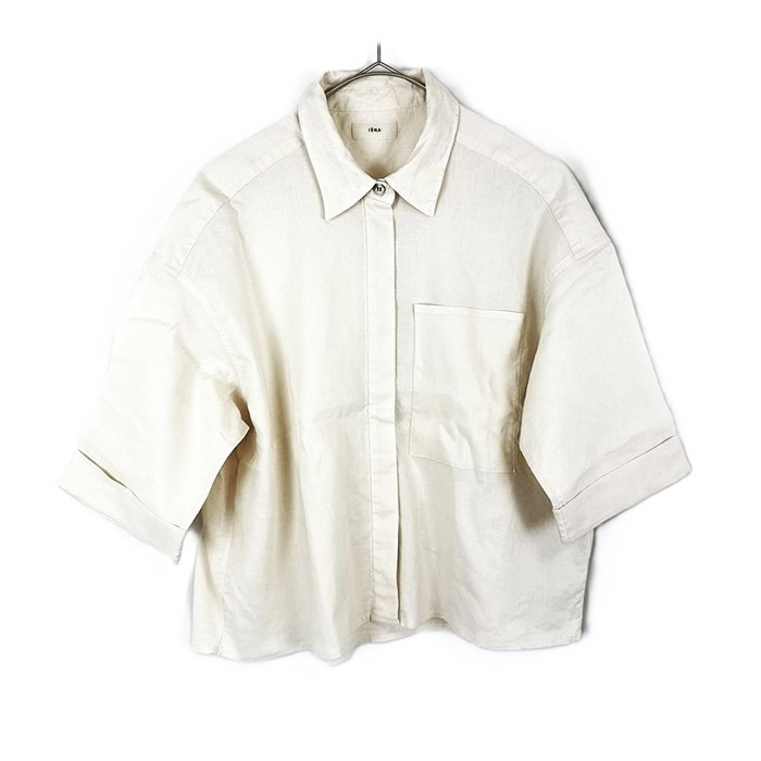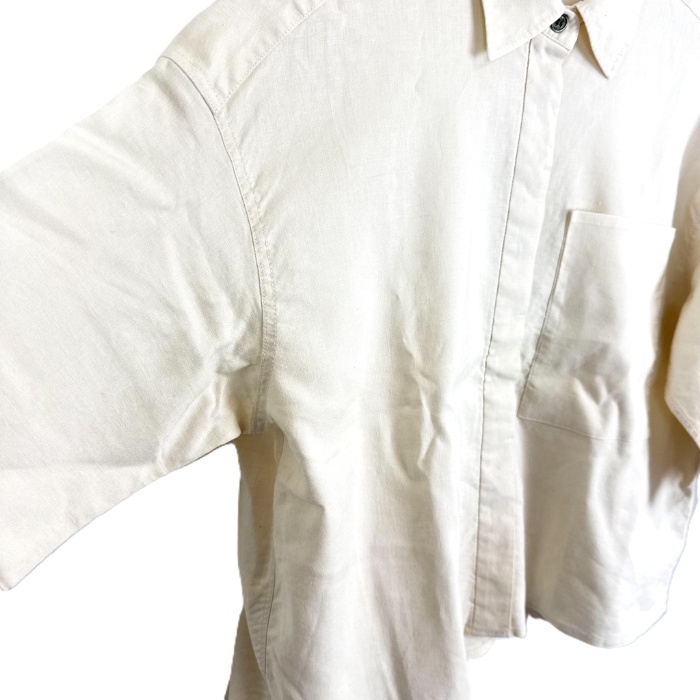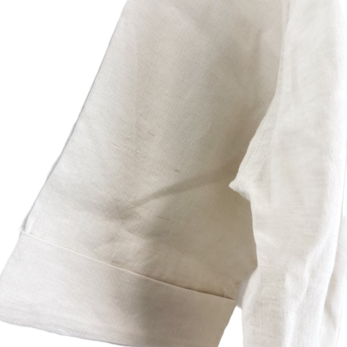 【コメント】 リネン混で涼しげな印象の半袖シャツです。ワイドシルエットで着痩せ効果。少し透け感があります。使用感はあまり感じられませんが、首元内側に汚れがあります。その他気になる所はなく全体的に綺麗なお品物です。 |