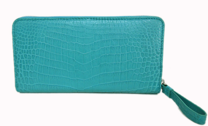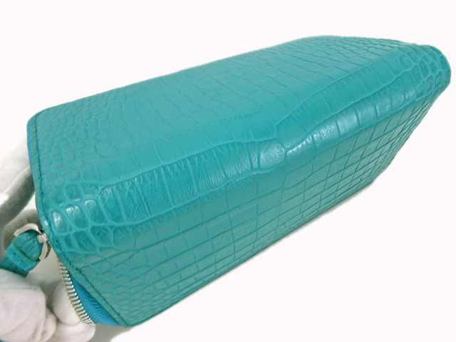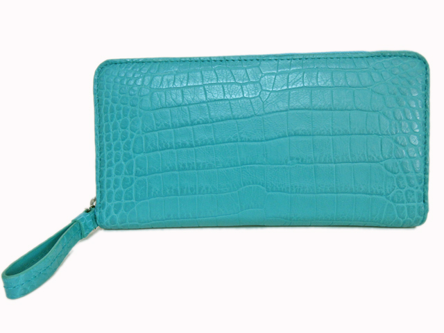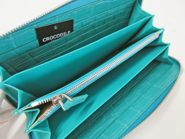 クロコダイル ラウンド型 長財布 ターコイズブルー 展示品在庫処分 1612