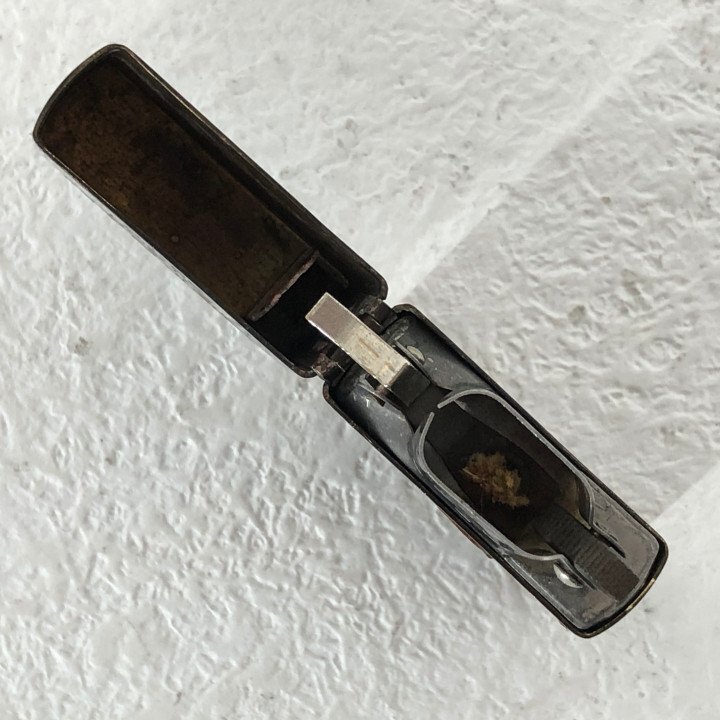 ▼サイズ ・縦:約5.5cm ・横:約3.6cm ・厚み:約1.2cm ※あくまでも参考サイズですのでご了承下さい。 ▼付属品:なし ※付属品は写真に写っているものが全てになります。 ▼商品説明 ・汚れや使用感があります。 ・全体的にキズ、くすみ、汚れ等あります。 ・装飾品を外した跡があります。 ・石摺りの確認は行っておりますが、オイルを入れての確認は行っておりません。 ・他商品と同梱の場合は佐川急便のみです。 こちらの商品は年代物の商品です。写真に写らない汚れ、キズがある場合がございます。 予めご了承の上、ヴィンテージ商品、古着にご理解頂ける方のみ入札をお願いいたします。 ※こちらの商品は、お宝あっとマーケット町田店(直営店)と併売しております。 当店にてご入札が確認出来次第、店舗での販売を終了させていただきます。 また、店舗で売れた際はYahoo!オークションをキャンセルとさせていただきます。 ご落札していただいても、時間差で売切れの場合がございます。 予めご了承の程よろしくお願い致します。 商品状態は当店にて検品、確認を行い商品情報へ記載しておりますが、 記載外の微細な汚れ、シワ、スレ、ダメージなどがある場合がございます。 予めご了承頂けますようお願い致します。 |