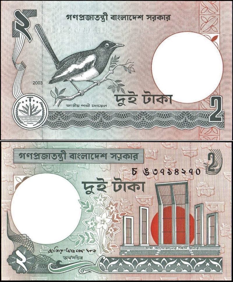 バングラデシュ 2タカ紙幣 1988年 100mm×60mm <>