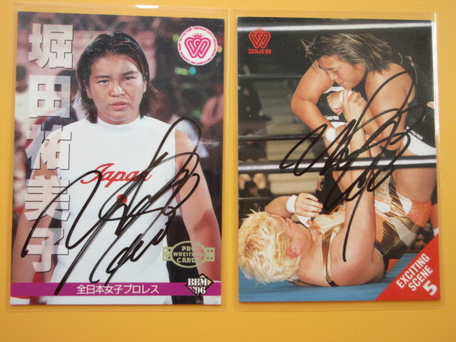 堀田祐美子☆直筆サイン入りプロレスカード2枚【プライベートサイン】全日本女子プロレス/商品説明欄全部必読!入札条件&取引条件厳守!