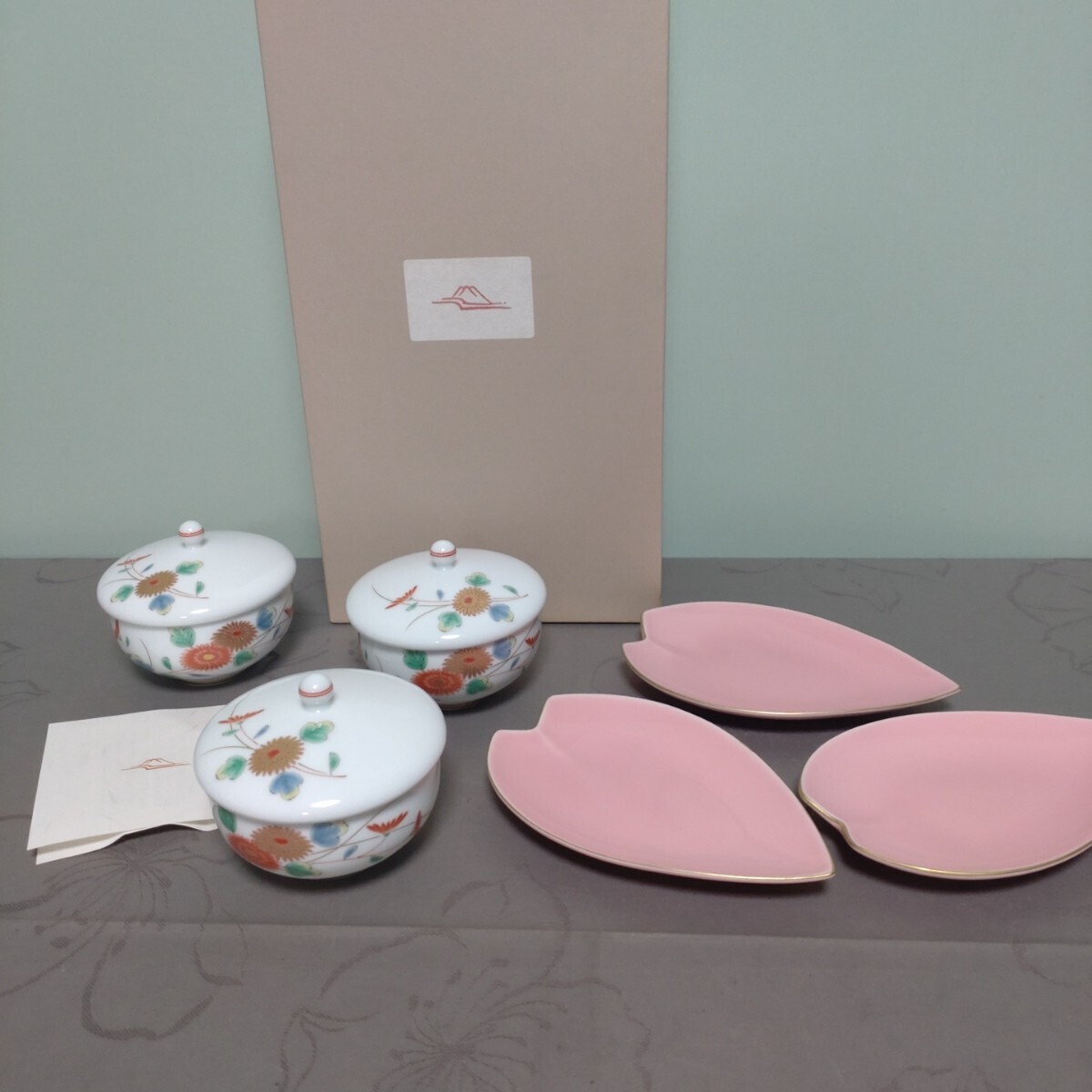 状態 | 未使用・保管品、難なく綺麗な状態です。深川製磁の汲出碗3客、セット割れです、素敵なお品です。どうぞご愛用ください。おまけにノンブランドですが桜の花弁型の銘々皿3枚をお付けします。 |