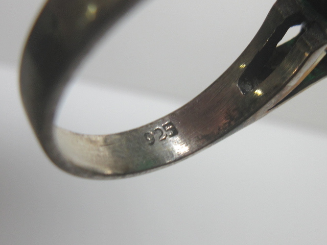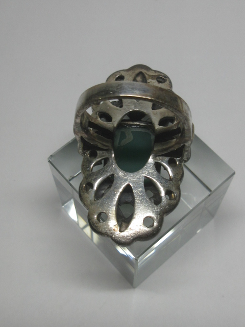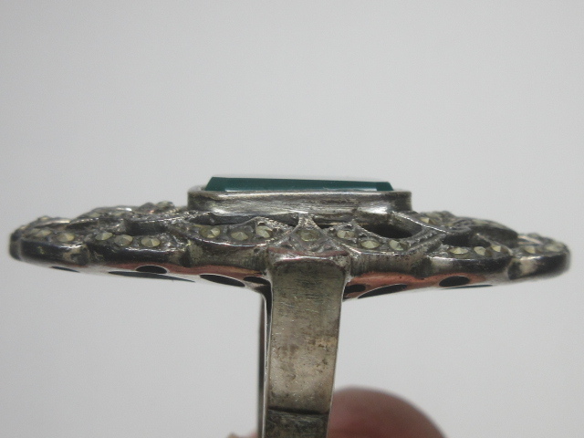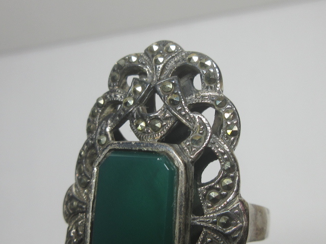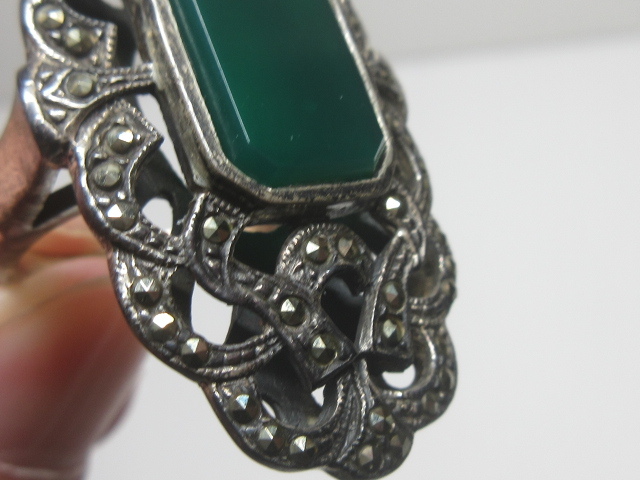 ★アンティークリング「緑瑪瑙&マーカサイト」★指輪・スターリングシルバー925製・透かし彫り★ビンテージ・昭和レトロ・コレクション★