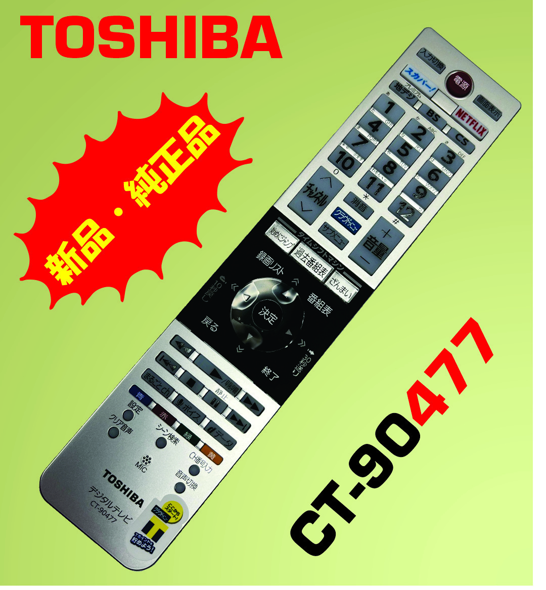 安心の不良返品保証付 新品 東芝 REGZA テレビ用リモコン CT-90477 3ヶ月間保証付き