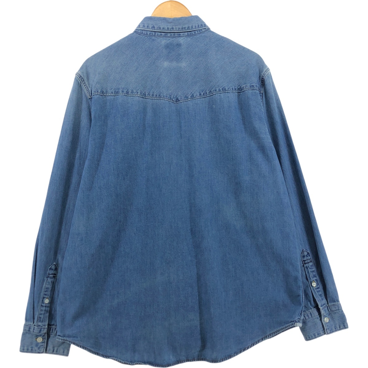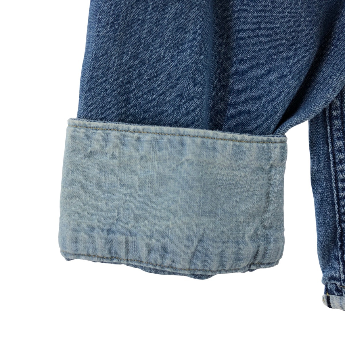 | 表記サイズ: XL 着丈: 77.5cm 身幅: 62.5cm 肩幅: 49cm 袖丈: 62.5cm ![]() | ![]() ランク:C USEDデニムですので使用感、擦れ、色落ちなどございますが、まだまだご愛用していただけます。 古着という事をご理解の上ご注文よろしくお願いします。 【状態追記】 ●内側、前、襟ぐりに汚れ、両袖内に汚れ。 |