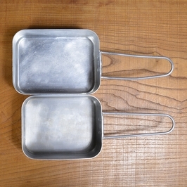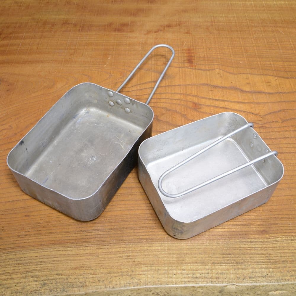 イギリス軍の歩兵が野営時にお湯を沸かしたり、食品の加熱をする際に使っていたアルミ製鍋の大小2個セットです。