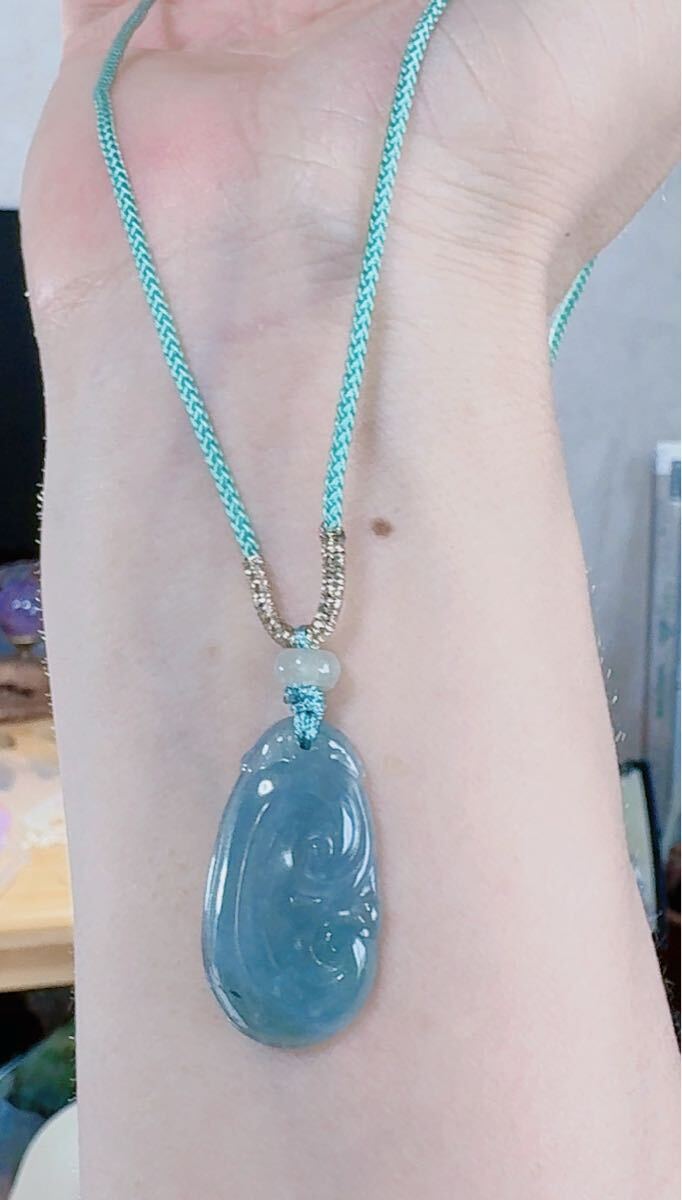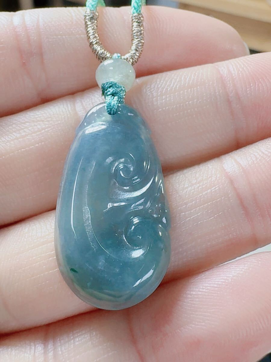 R2-01315天然本翡翠《本物保証》「如意」ペンダント 一品一図 高品質 一点物 魔除け 昇進 成功 風水 金運 財運 幸運 幸福 縁起物 パワーストーン
