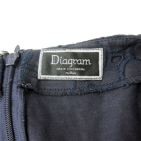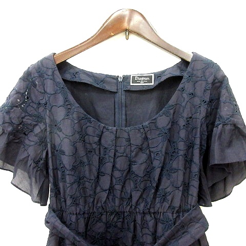 ダイアグラム グレースコンチネンタル Diagram GRACE CONTINENTAL ワンピース ミニ 刺繍 半袖 36 S 紺 ネイビー /MN レディース