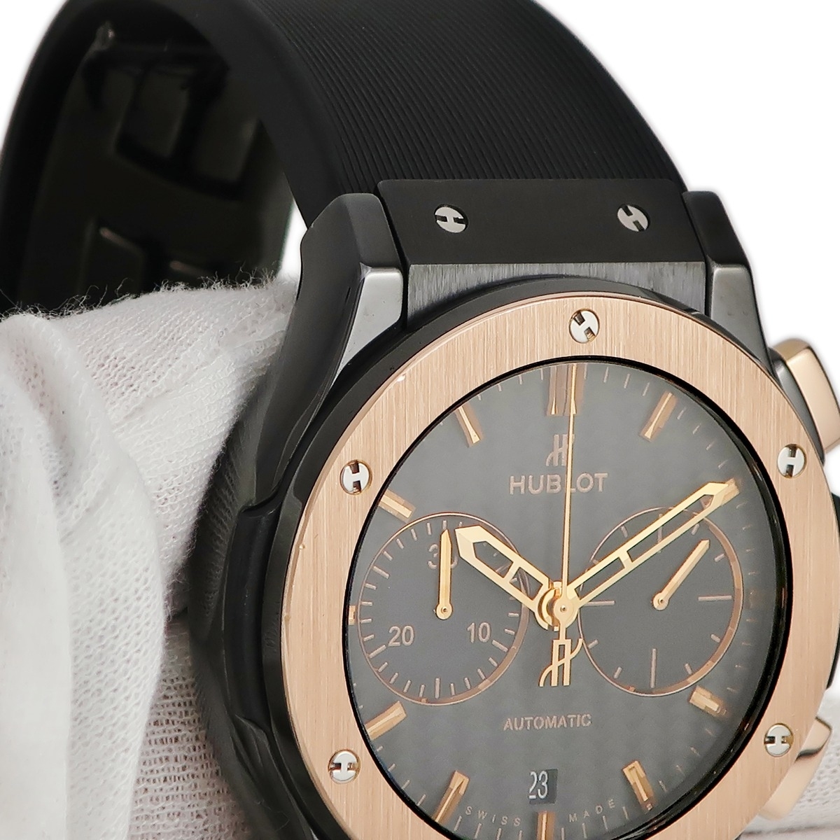 | 素材 | セラミック / K18キングゴールド / 純正ラバーバンド / 純正K18KG×SS製バックル | |