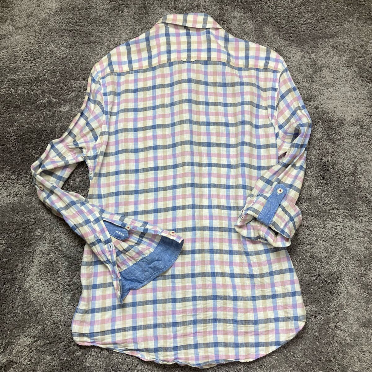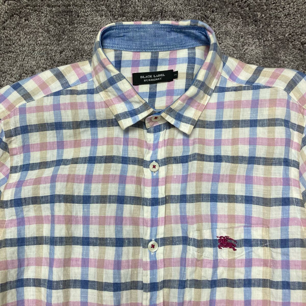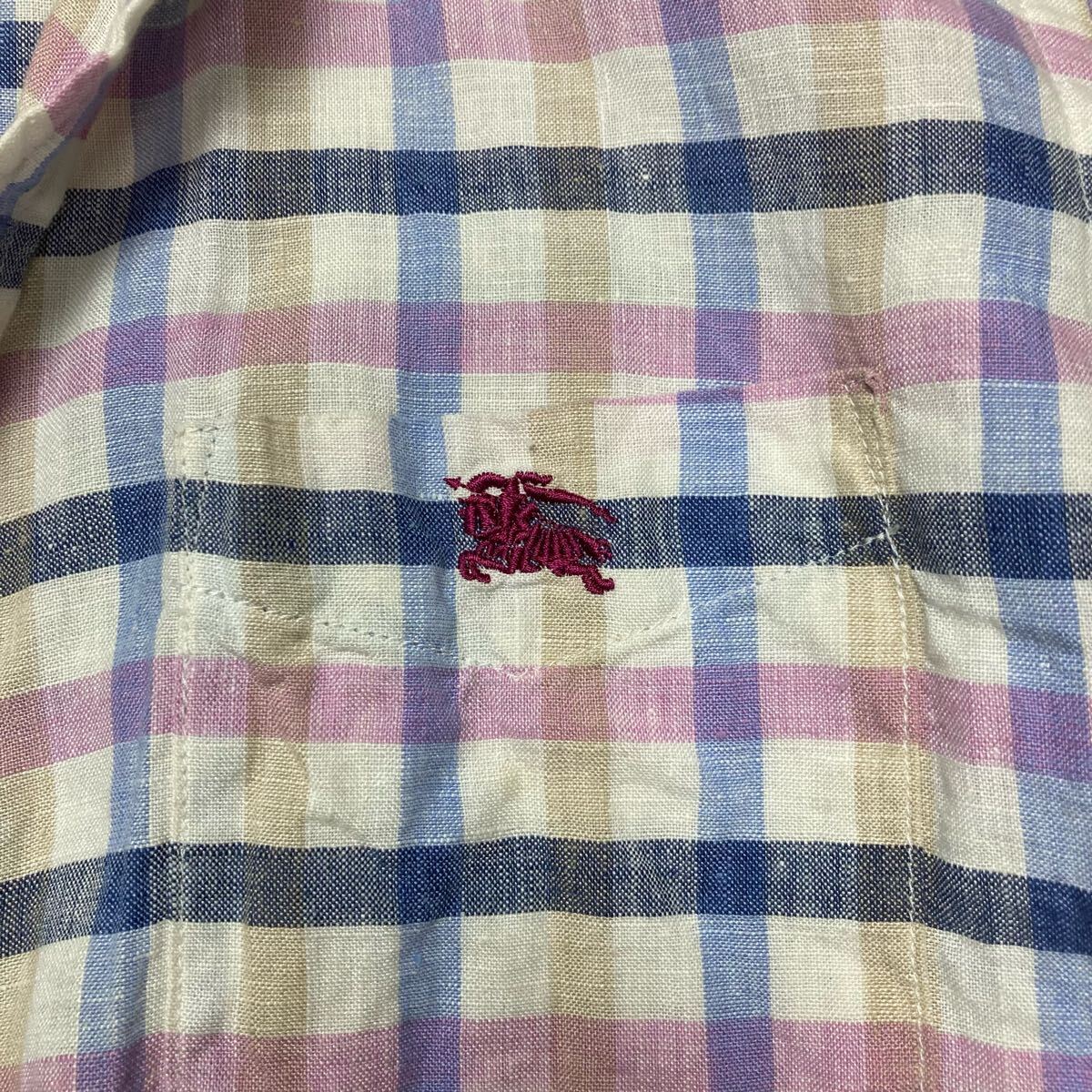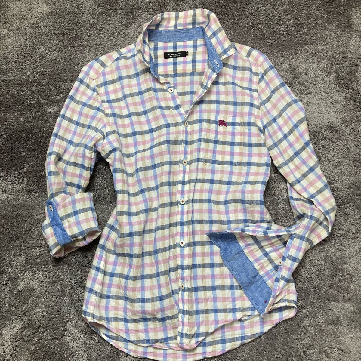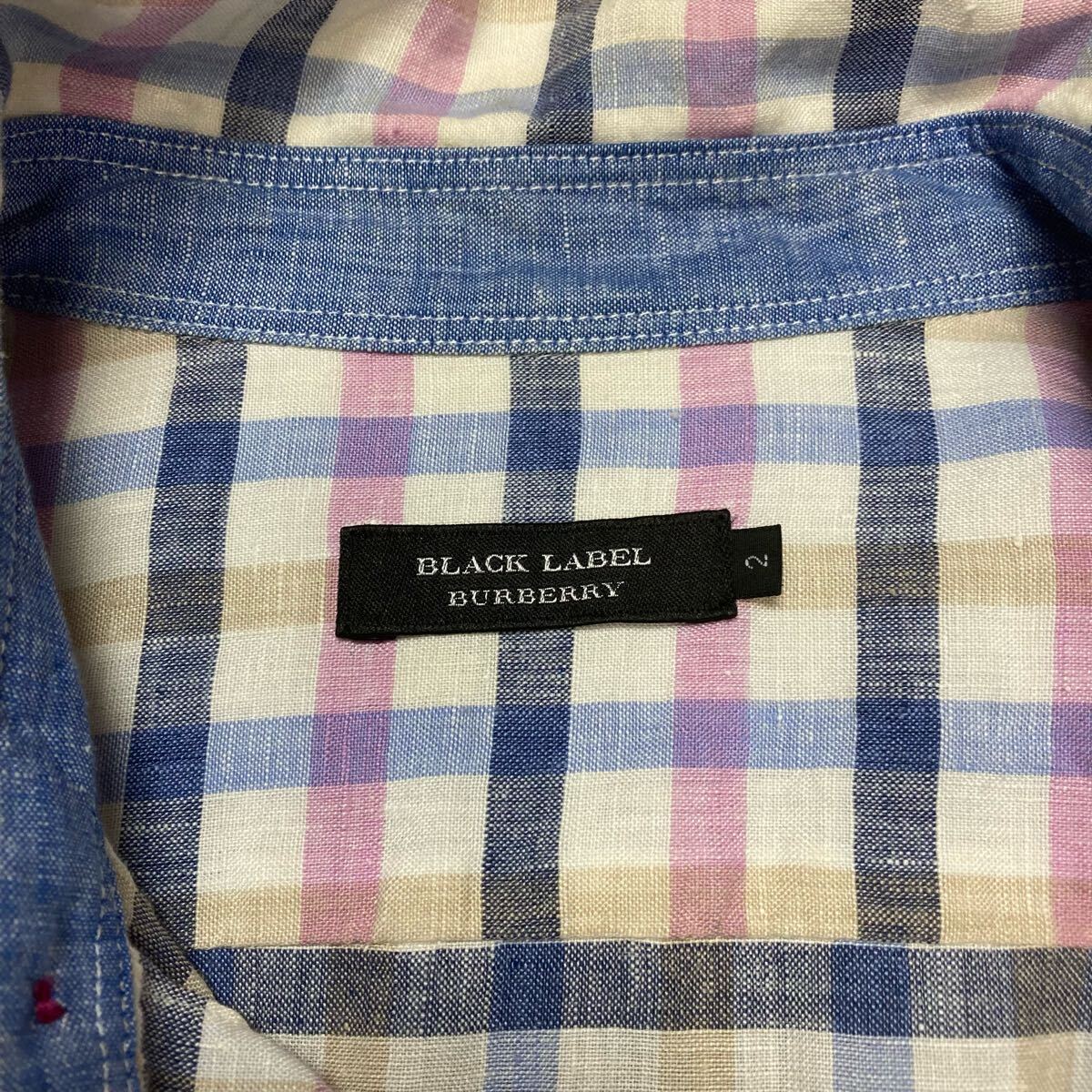 即決★BURBERRY★サイズ2 バーバリー BLACKLABEL 長袖 メンズ チェック 青 ブルー ピンク トップス Yシャツ ビジネスシャツ Y062