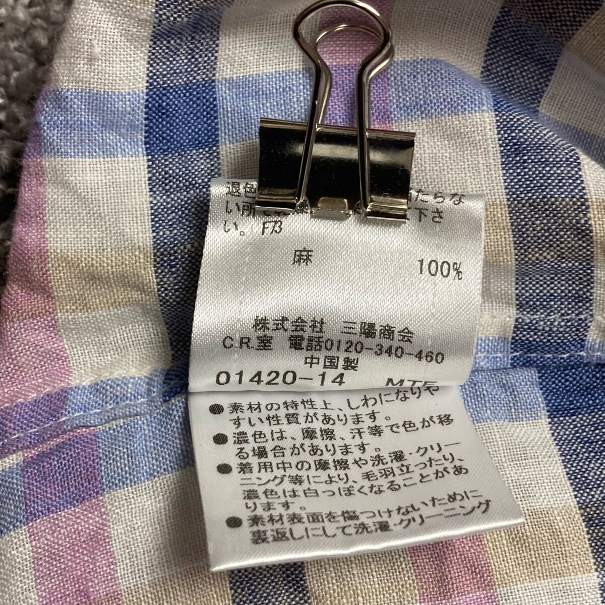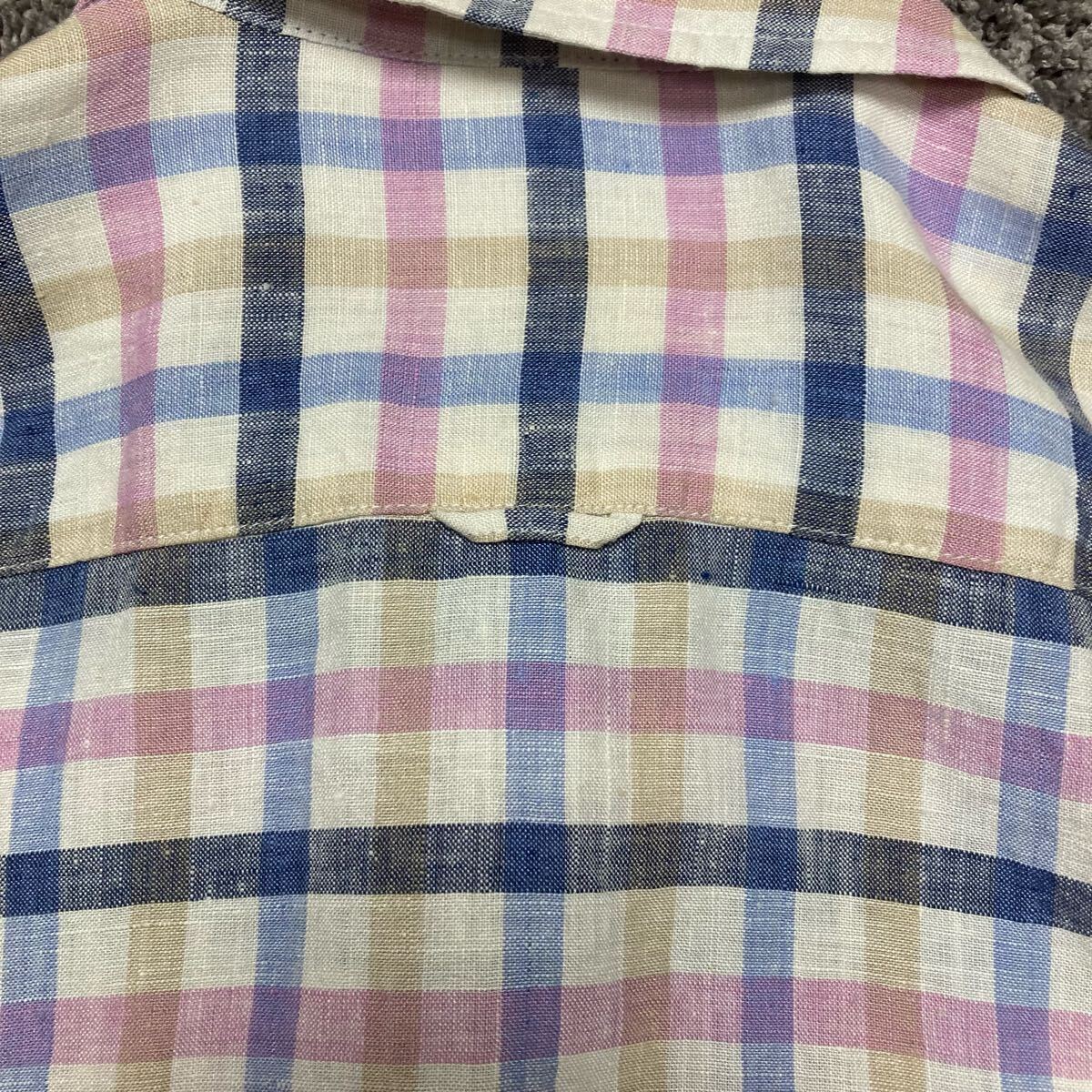 麻 チェック 爽やか 涼しい ナイト刺繍