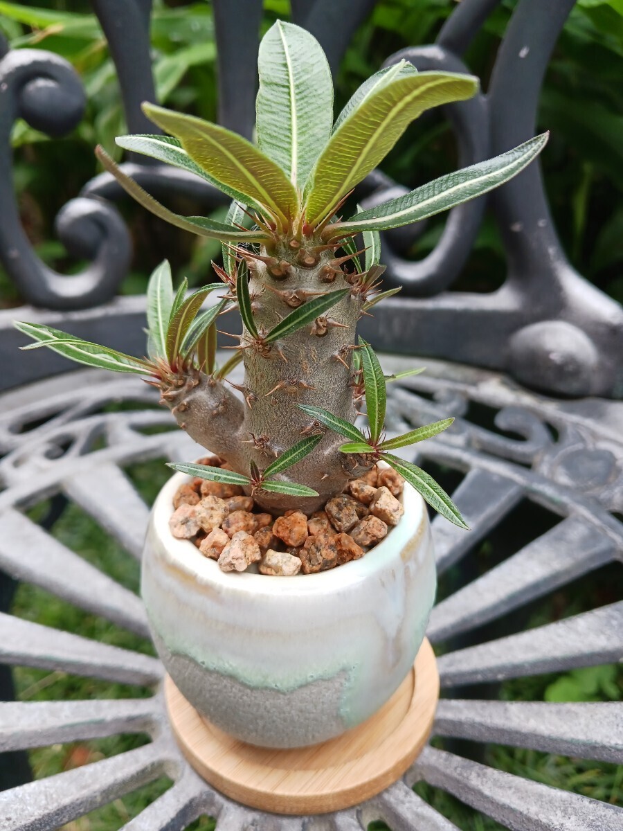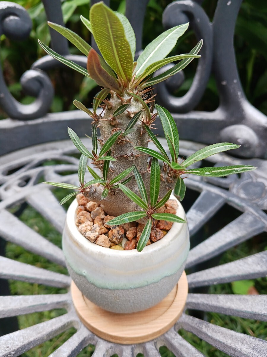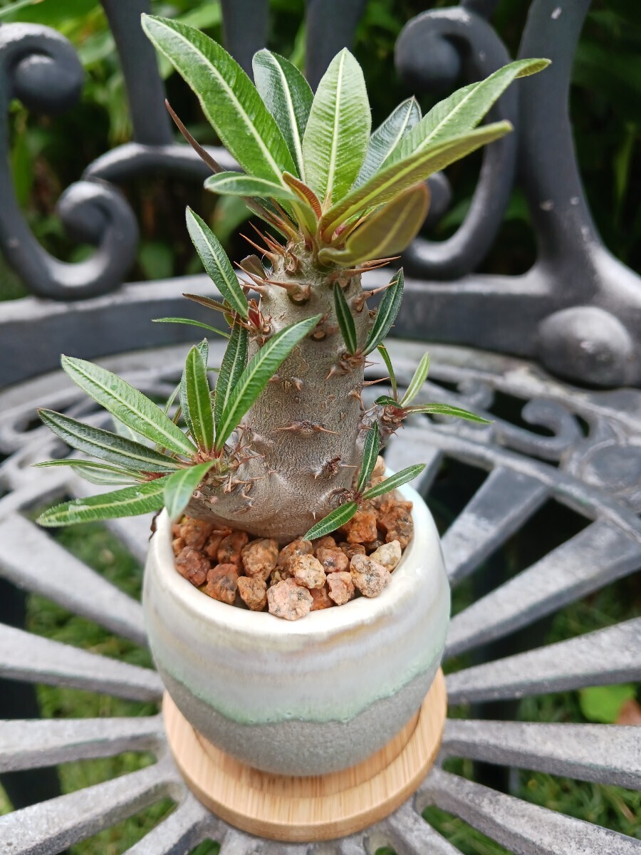 鉢のサイズ、高さ約55ミリ、直径約60ミリの陶器鉢に植えて管理しています。