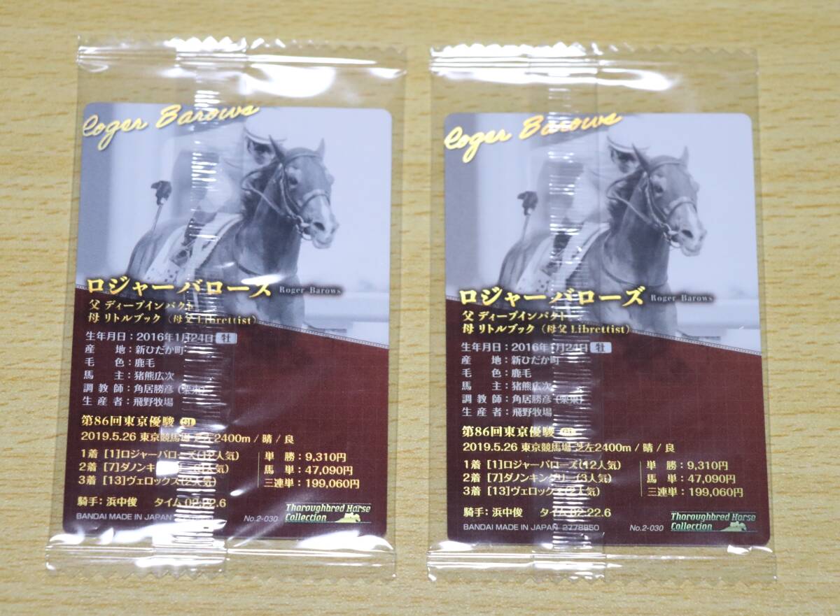 ロジャーバローズ 浜中俊騎手 カード 2枚セット サイン金色箔押し+ノーマル サラブレッドホースコレクション ツインウエハース 第2R 日本ダービーです。気に入って頂けた方の落札を心よりお待ちしております。商品はゆうパケットポストで発送となります。どうかよろしくお願い致します。