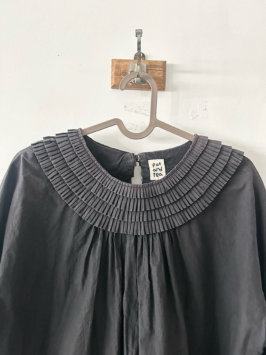 首元に大胆なフリルをあしらったコットン素材のワンピースです。
