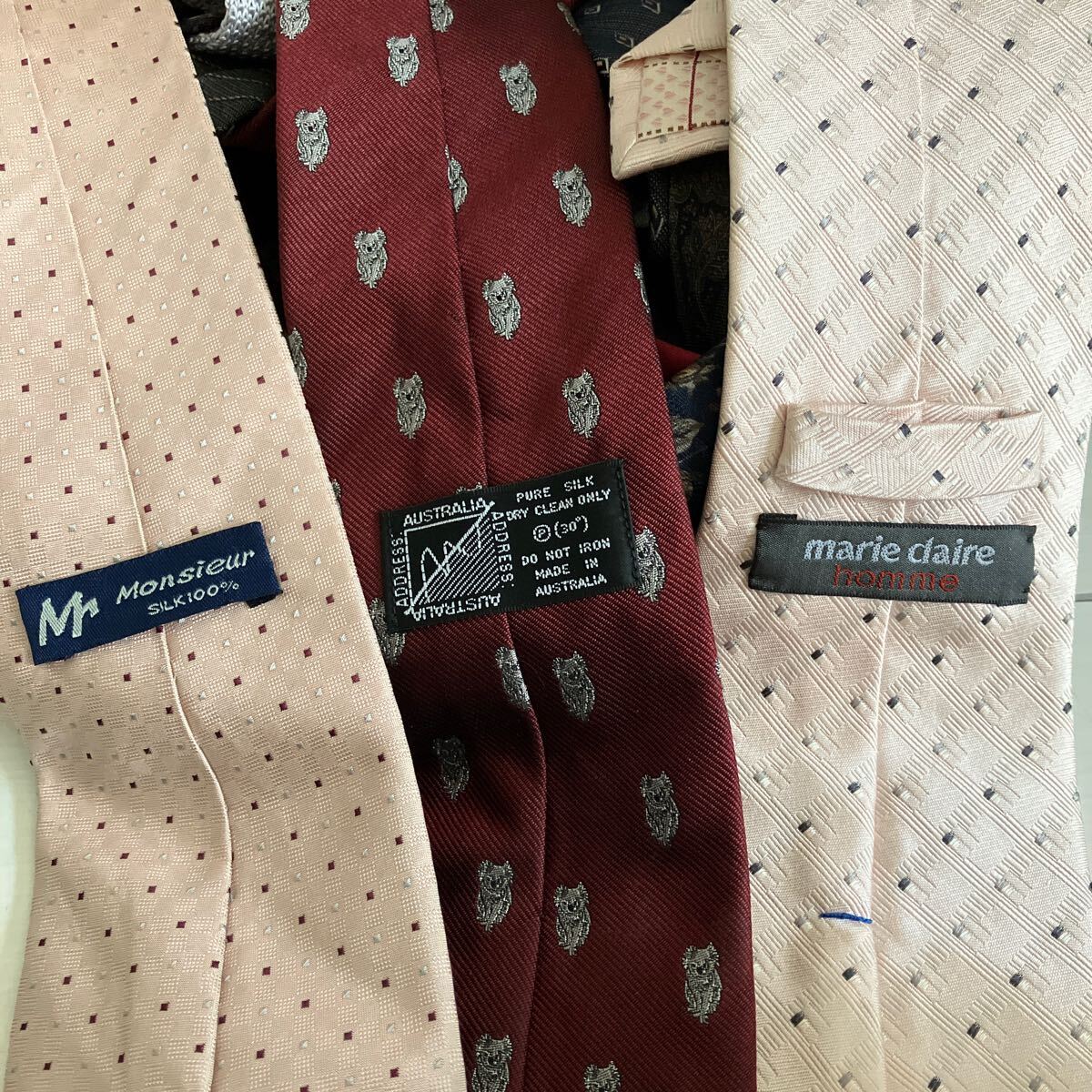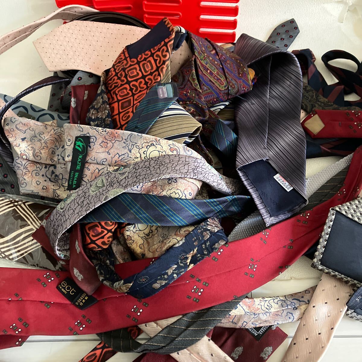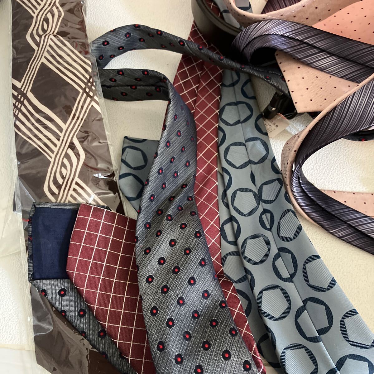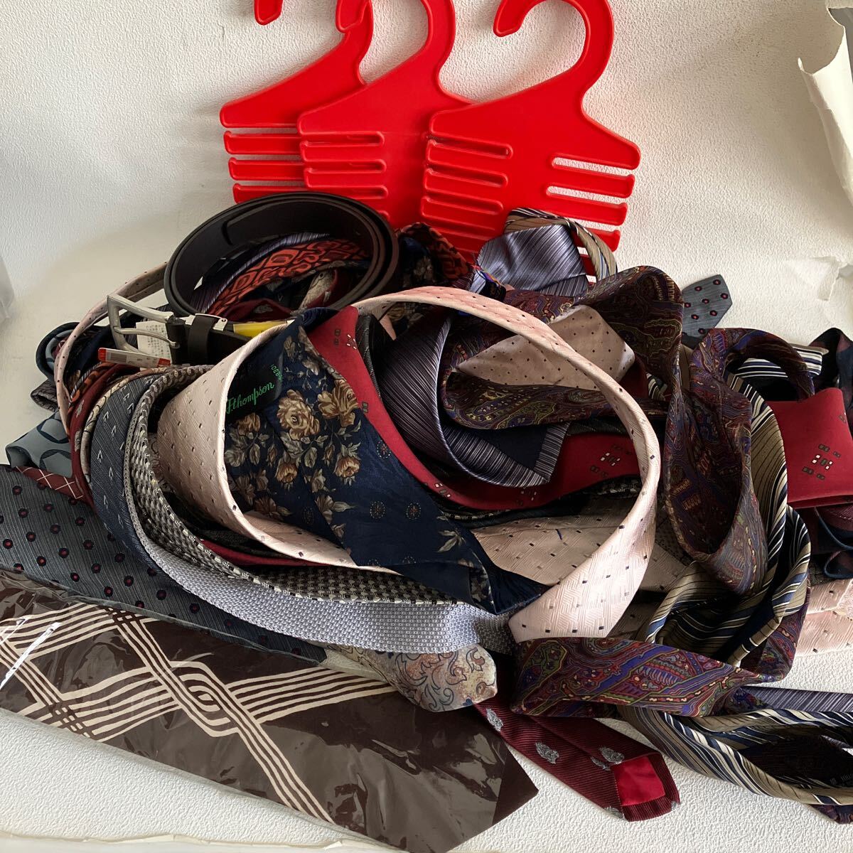 e77-80 ネクタイ 大量 セット まとめて シルク ポリエステル ビジネス ブランド 総柄 マリクレール 牛革ベルト ハンガー
