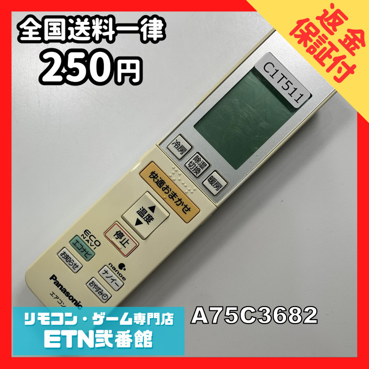 C1T511 【送料250円】エアコン リモコン / Panasonic パナソニック A75C3682 動作確認済み★即発送★ 冷房 暖房