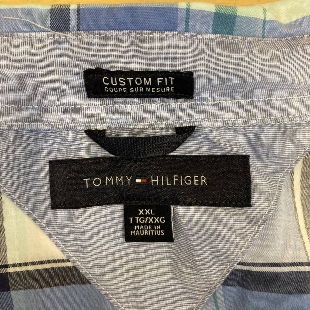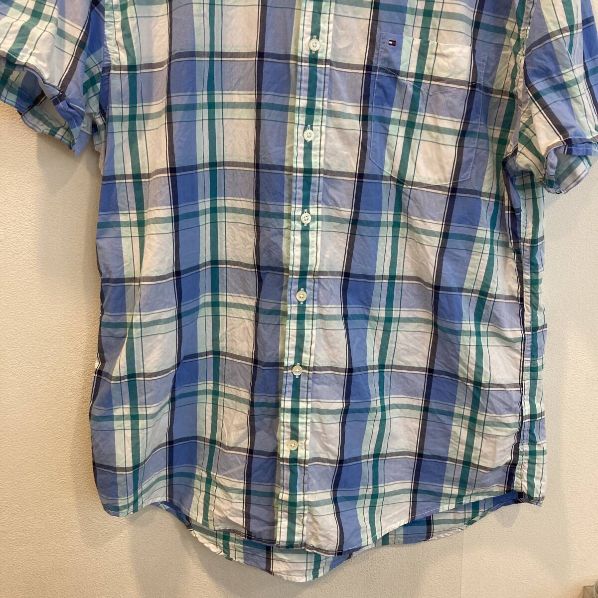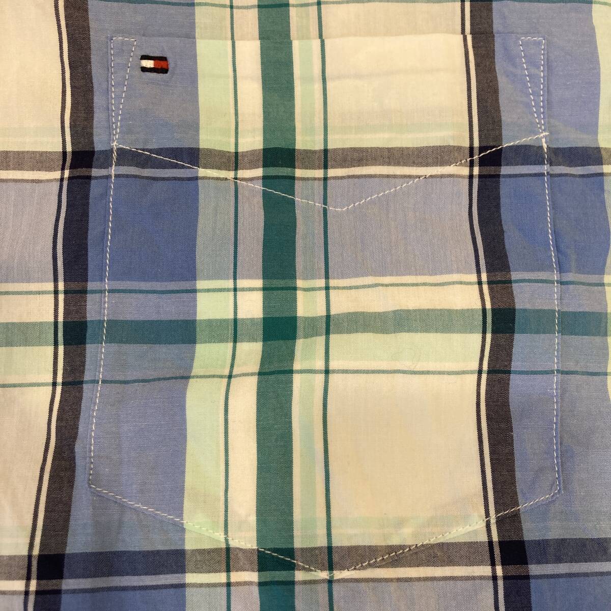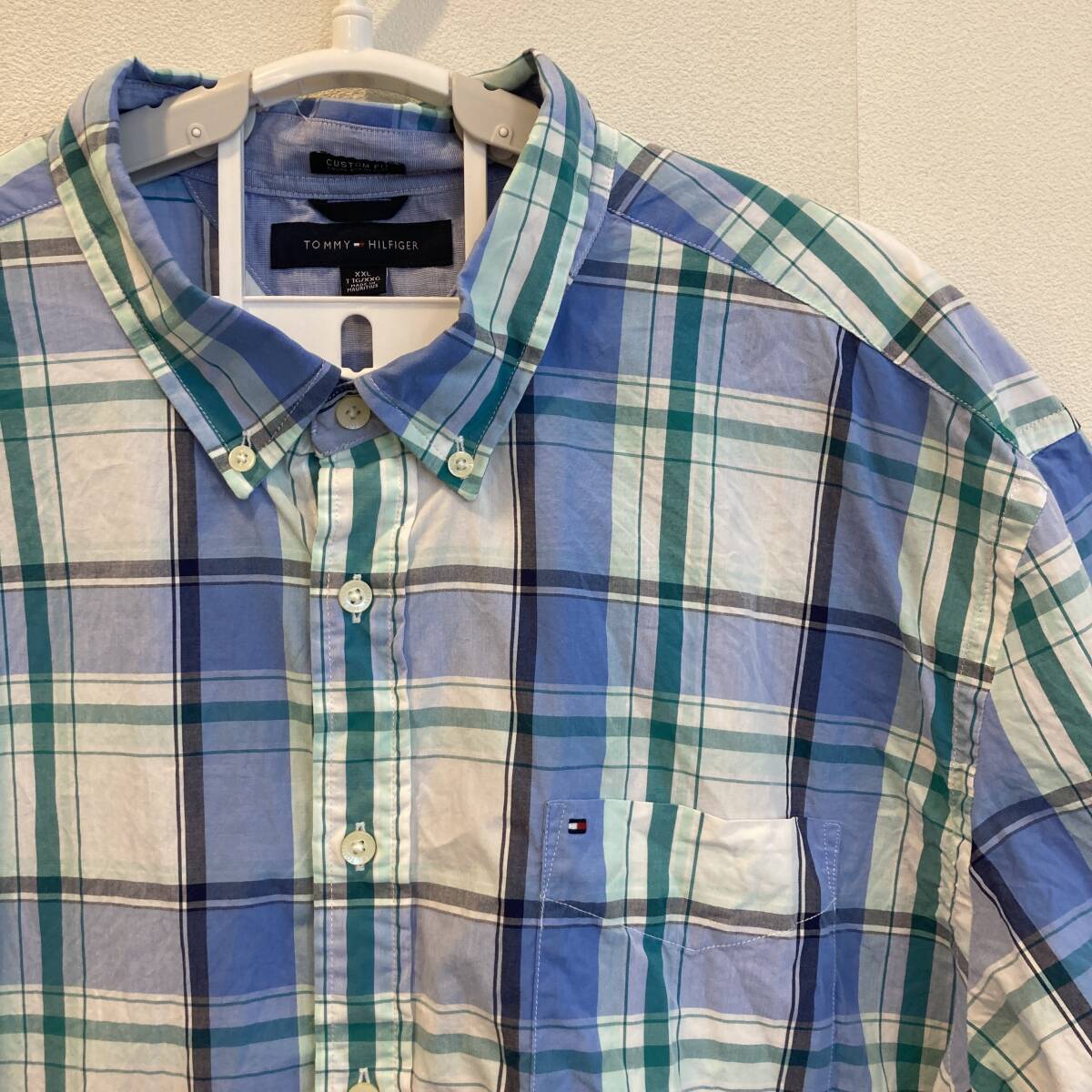 中古 アメリカ古着 TOMMY HILFIGER トミーヒルフィガー 半袖 XXL 2XL 3L 青 緑 ブルー チェック サイズ ビンテージ カジュアル 送料無料