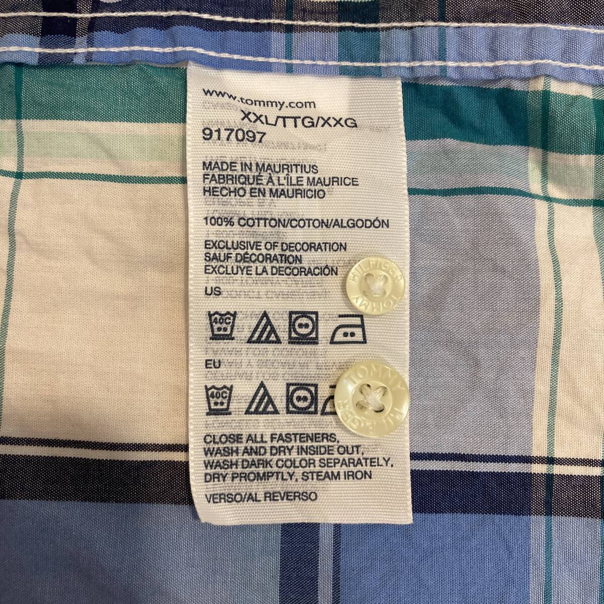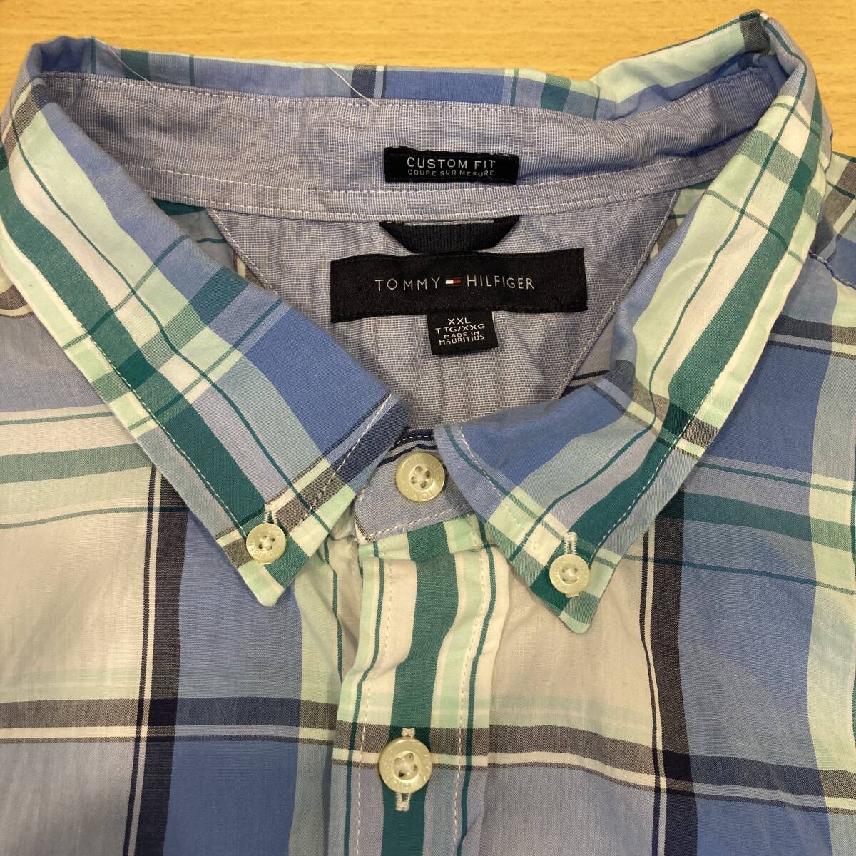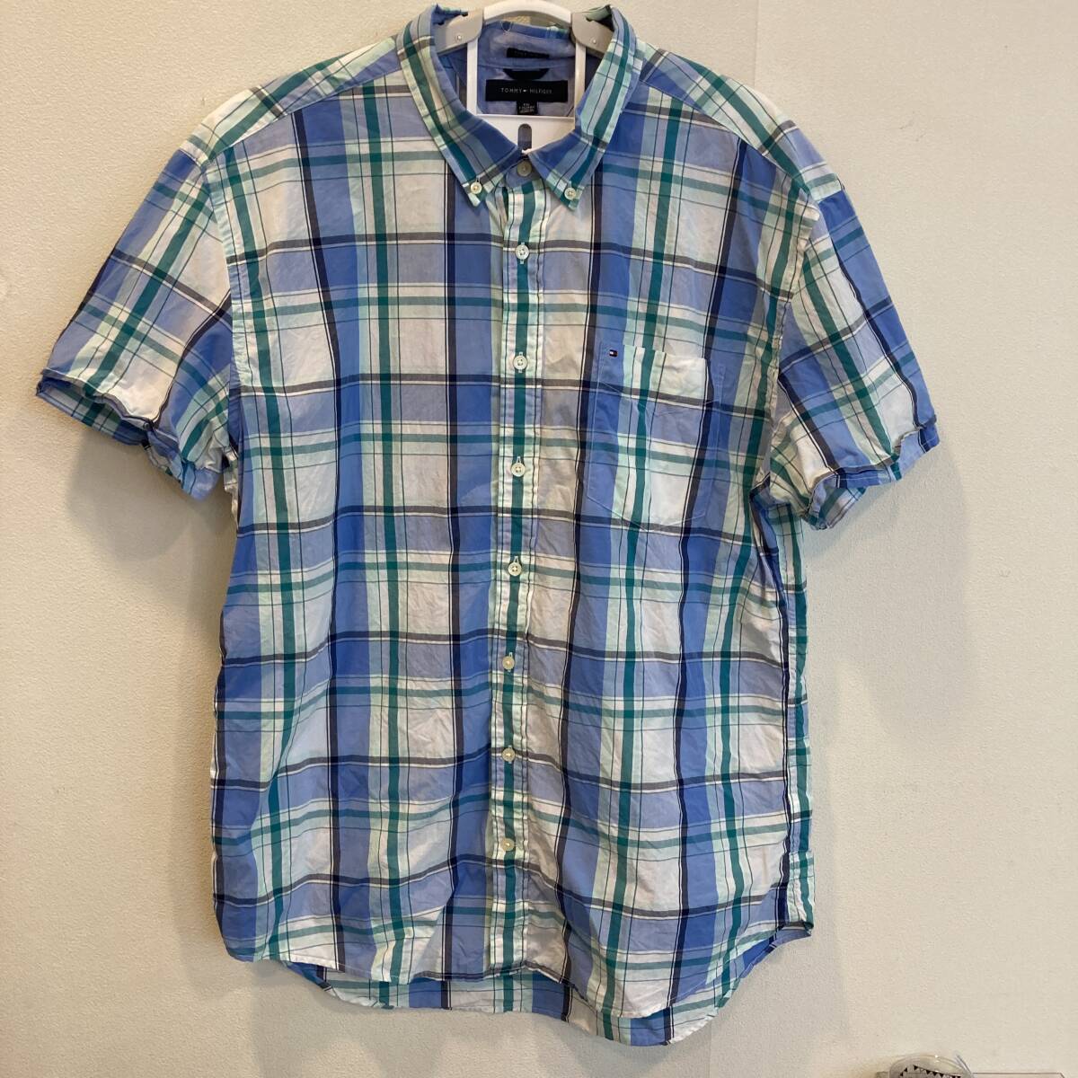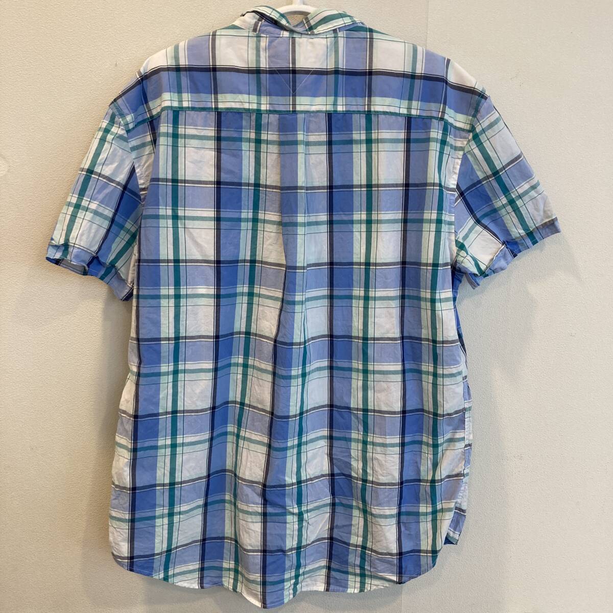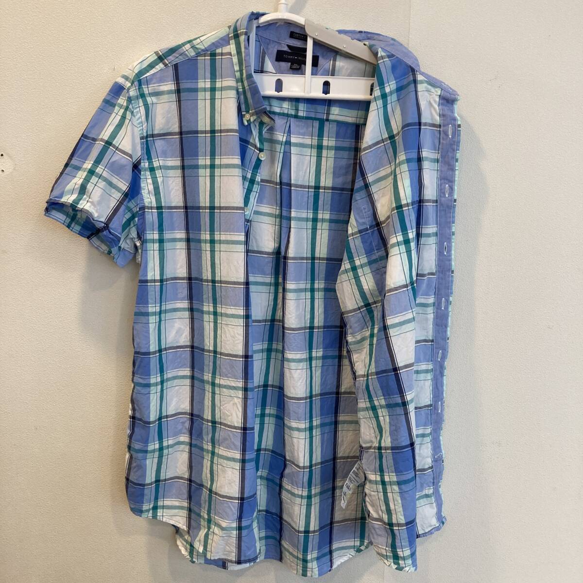 中古 アメリカ古着 TOMMY HILFIGER トミーヒルフィガー 半袖 XXL 2XL 3L 青 緑 ブルー チェック サイズ ビンテージ カジュアル 送料無料