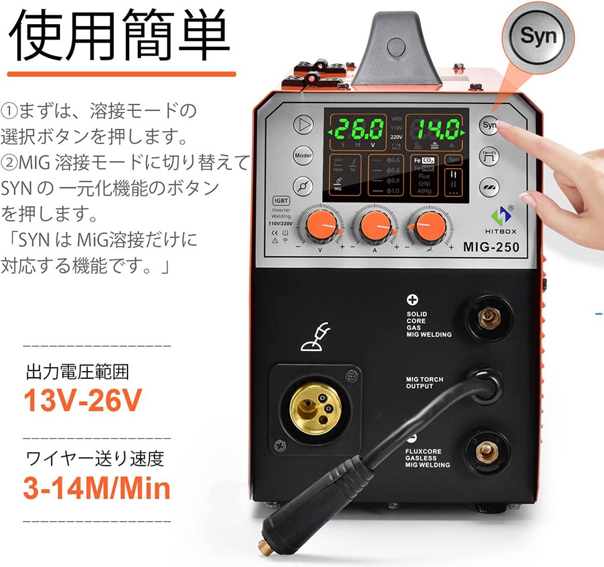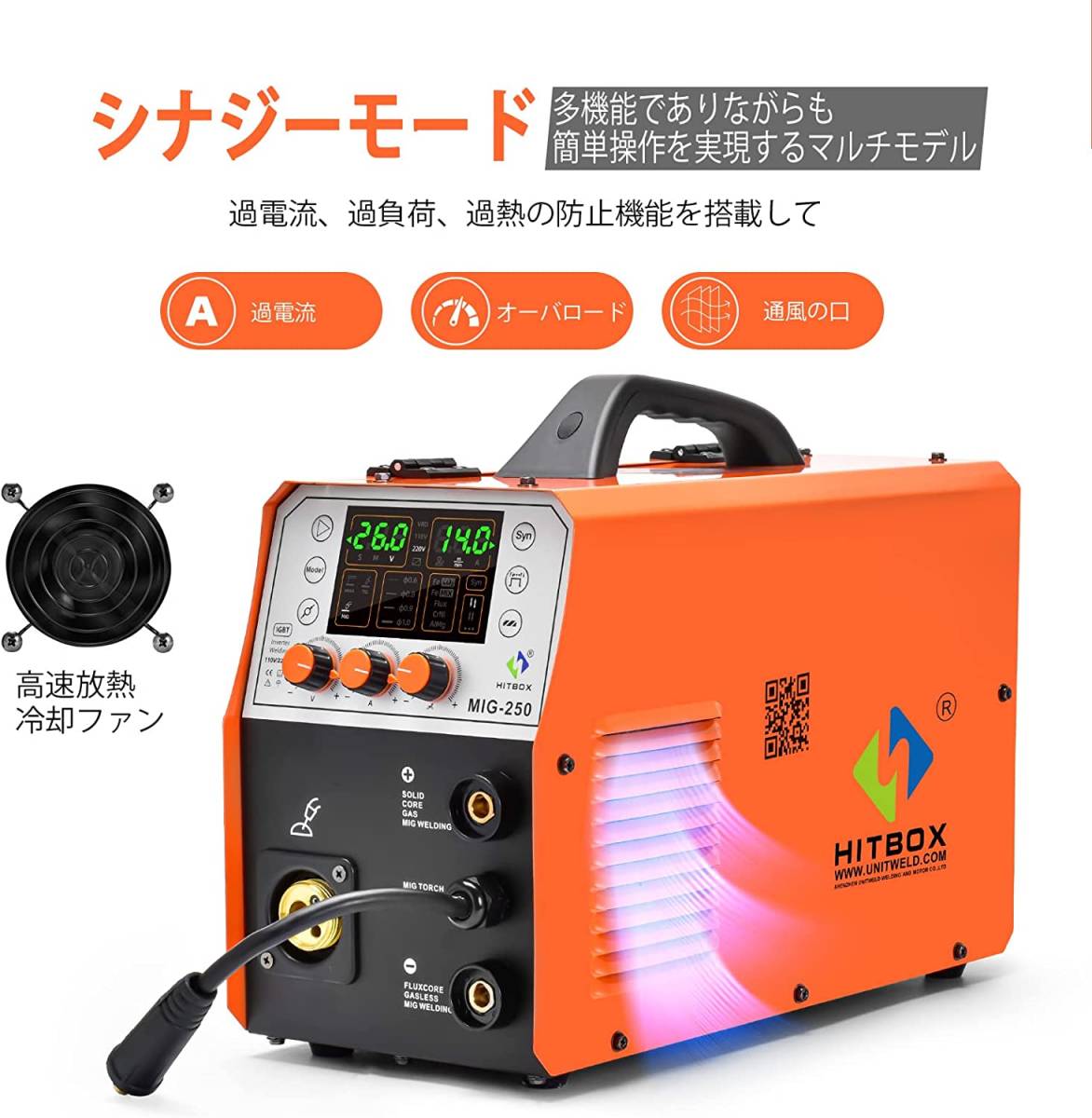 【新品】HITBOX マルチ半自動溶接機 MIG-250 アルミ溶接可能 200A 100V&200V兼用 MIG MMA リフトTIG溶接 日本語取扱説明書
