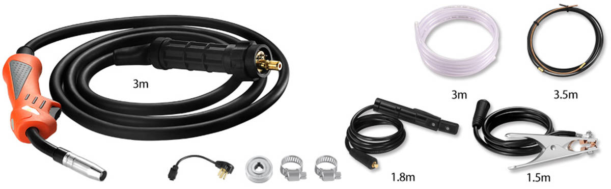 【付属品】MIG MB15ABトーチ、接地コード 、溶接棒ホルダー 、アルミ用ライナー、ガスホース、ホースバンド2個、送給ロール2個