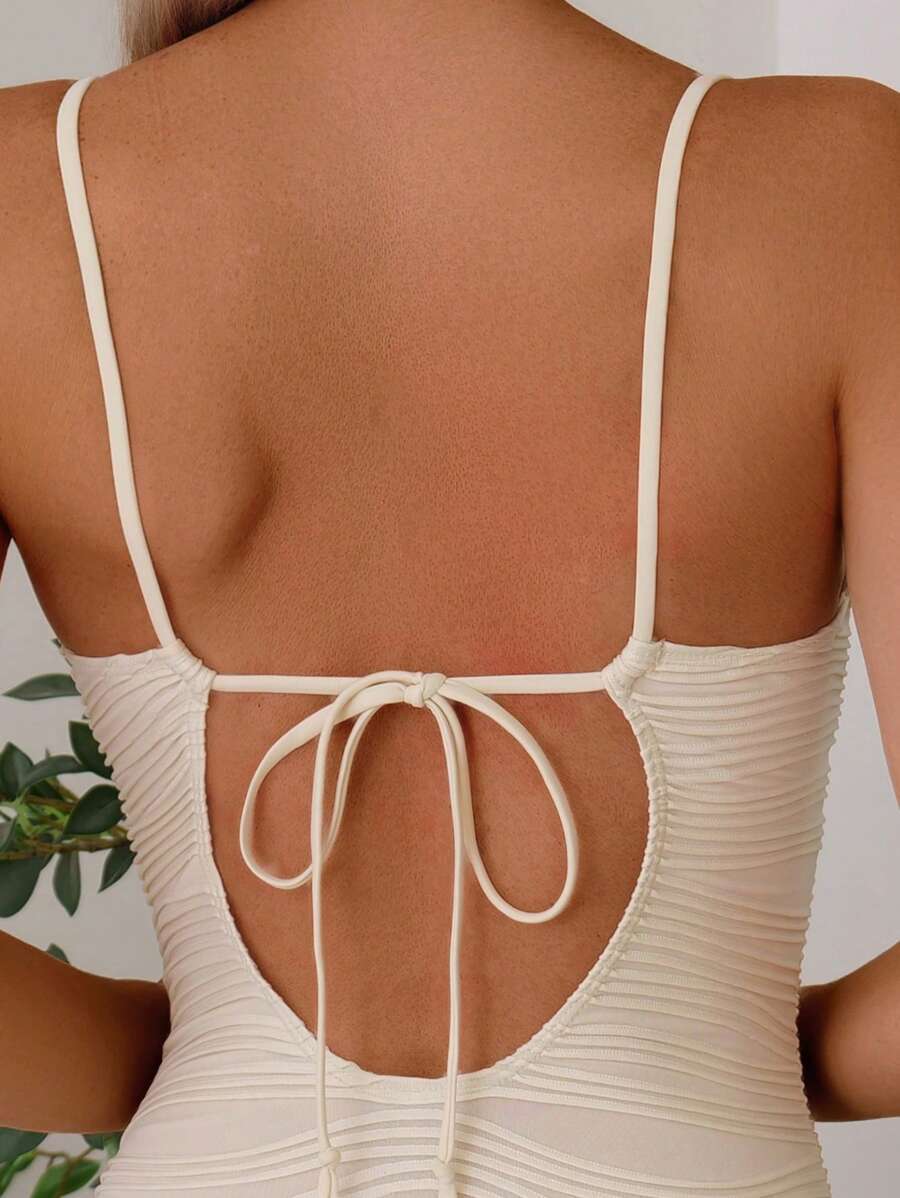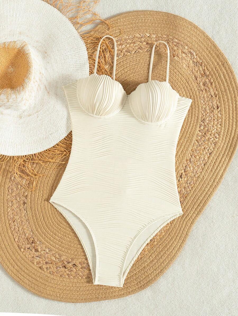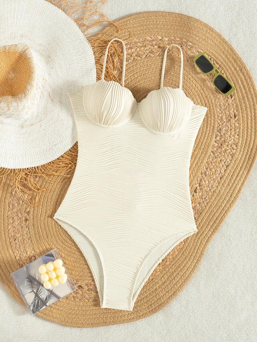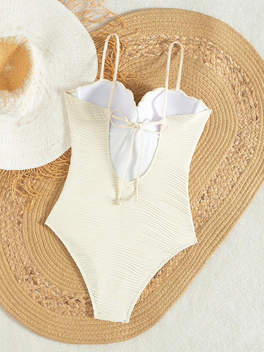 レディース 水着 ワンピース 女性用夏用ビーチテクスチャー生地シェル フリル背中調整可能タイバックスリムフィット リラックススイム