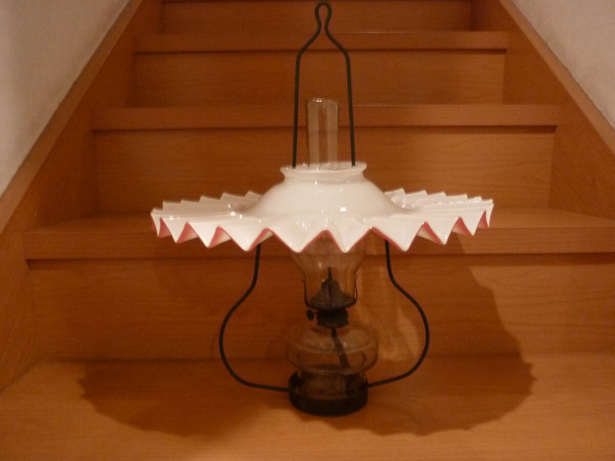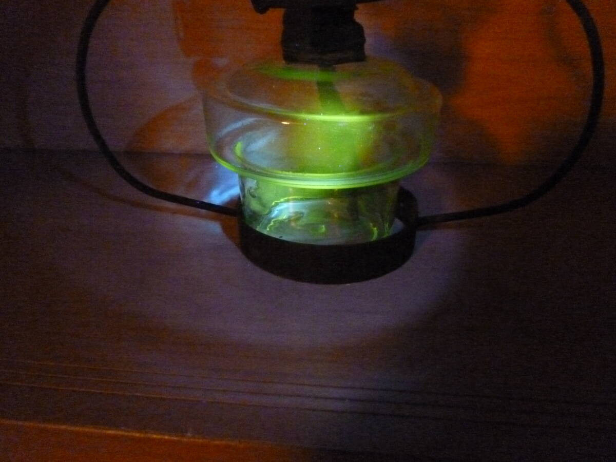 ウランガラス 大型乳白色フリルガラスオイルランプ 大正ロマン 昭和アンティークレトロ