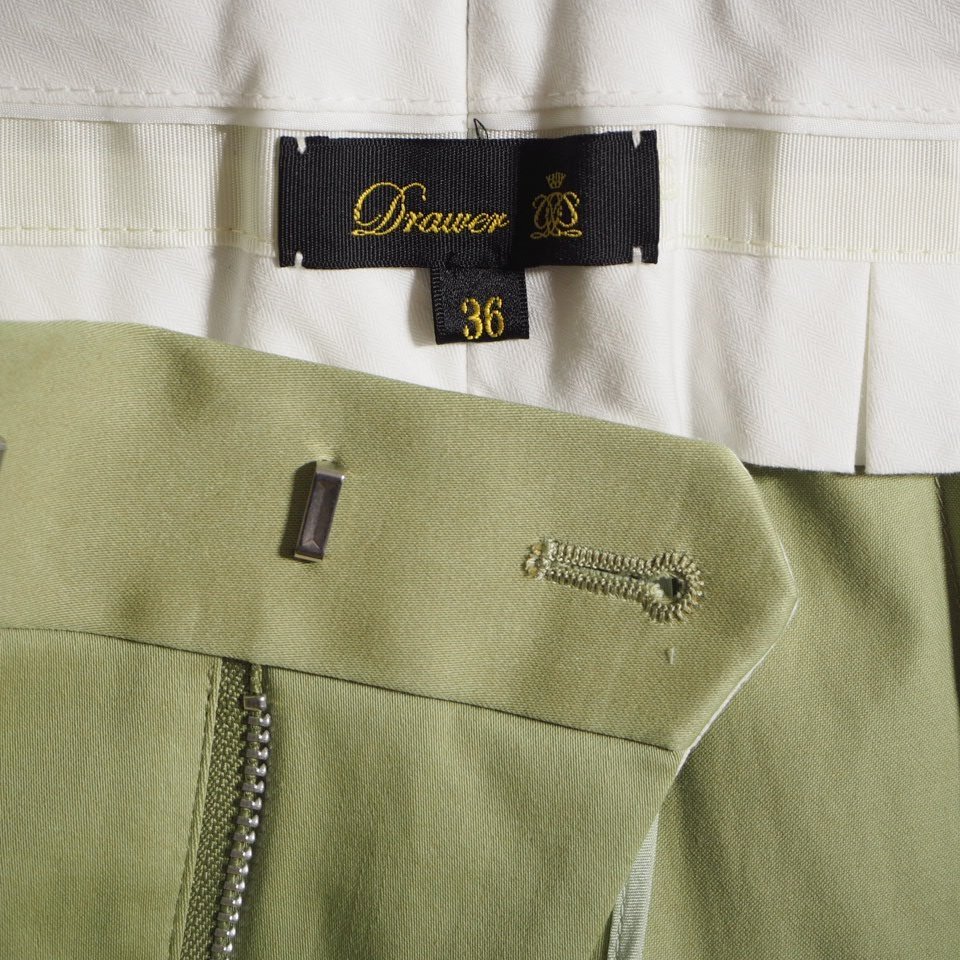 M4197f30 ▼Drawer ドゥロワー▼ コットン サテン タックパンツ グリーン 36 / 6514-236-0869 テーパードパンツ 春~秋