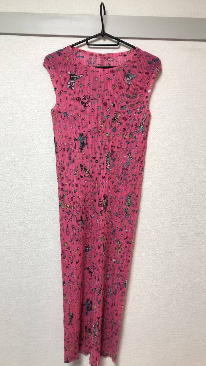 ■■【新品未使用】ブリーツ加工変形ノースリーブワンピース総柄■■