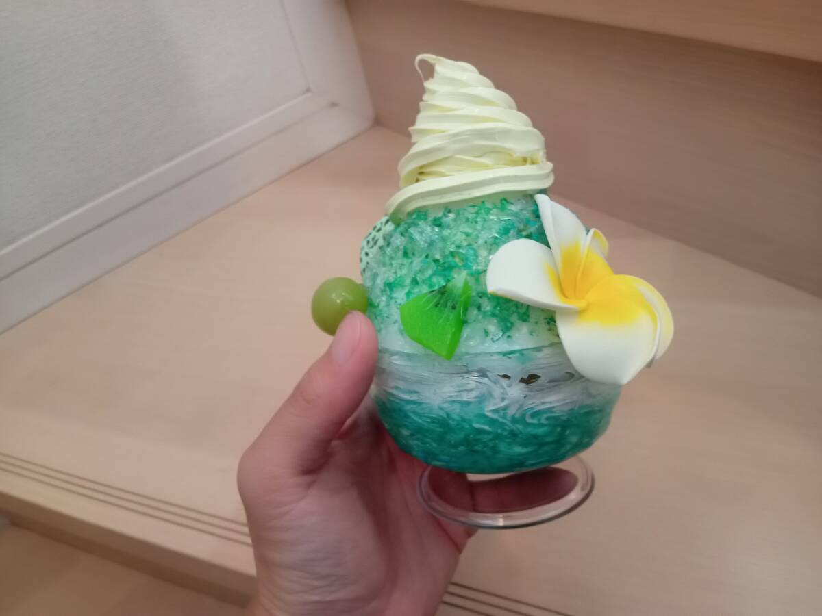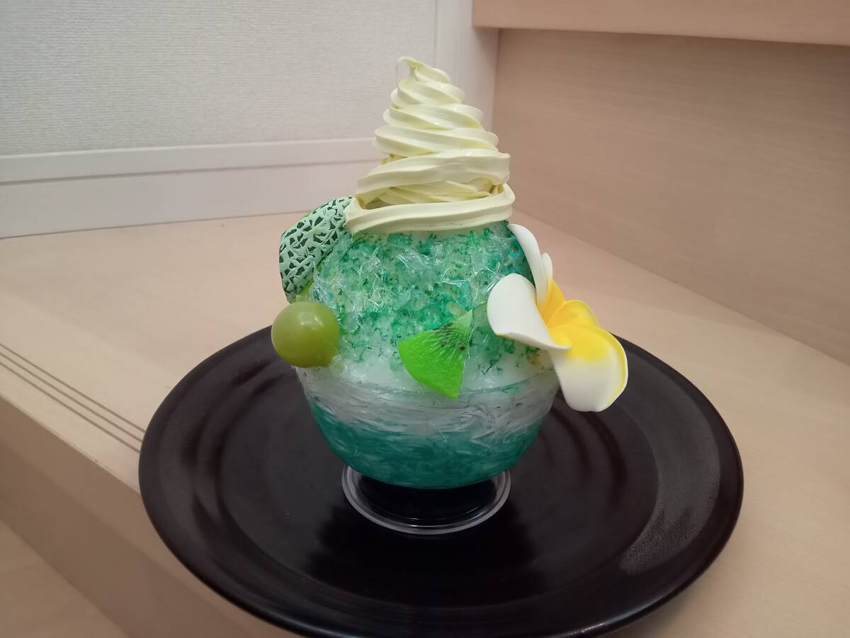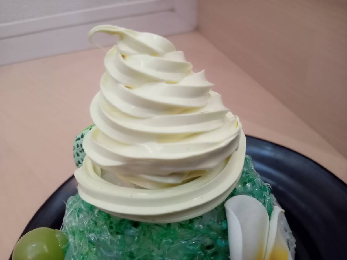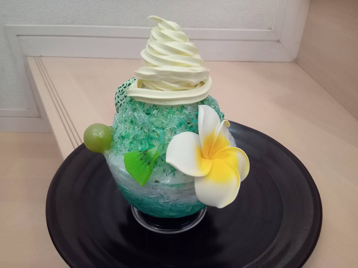メロンかき氷(フルーツ、ソフトクリーム付き)の食品サンプルです!!