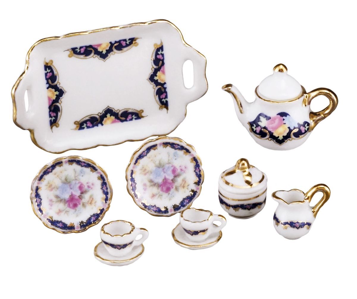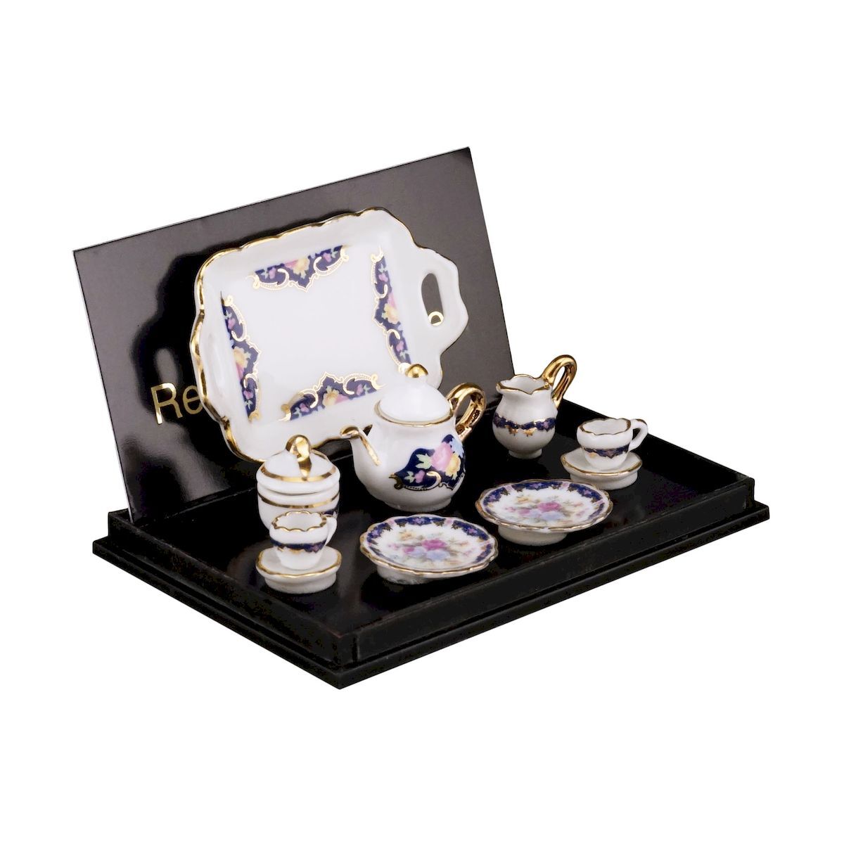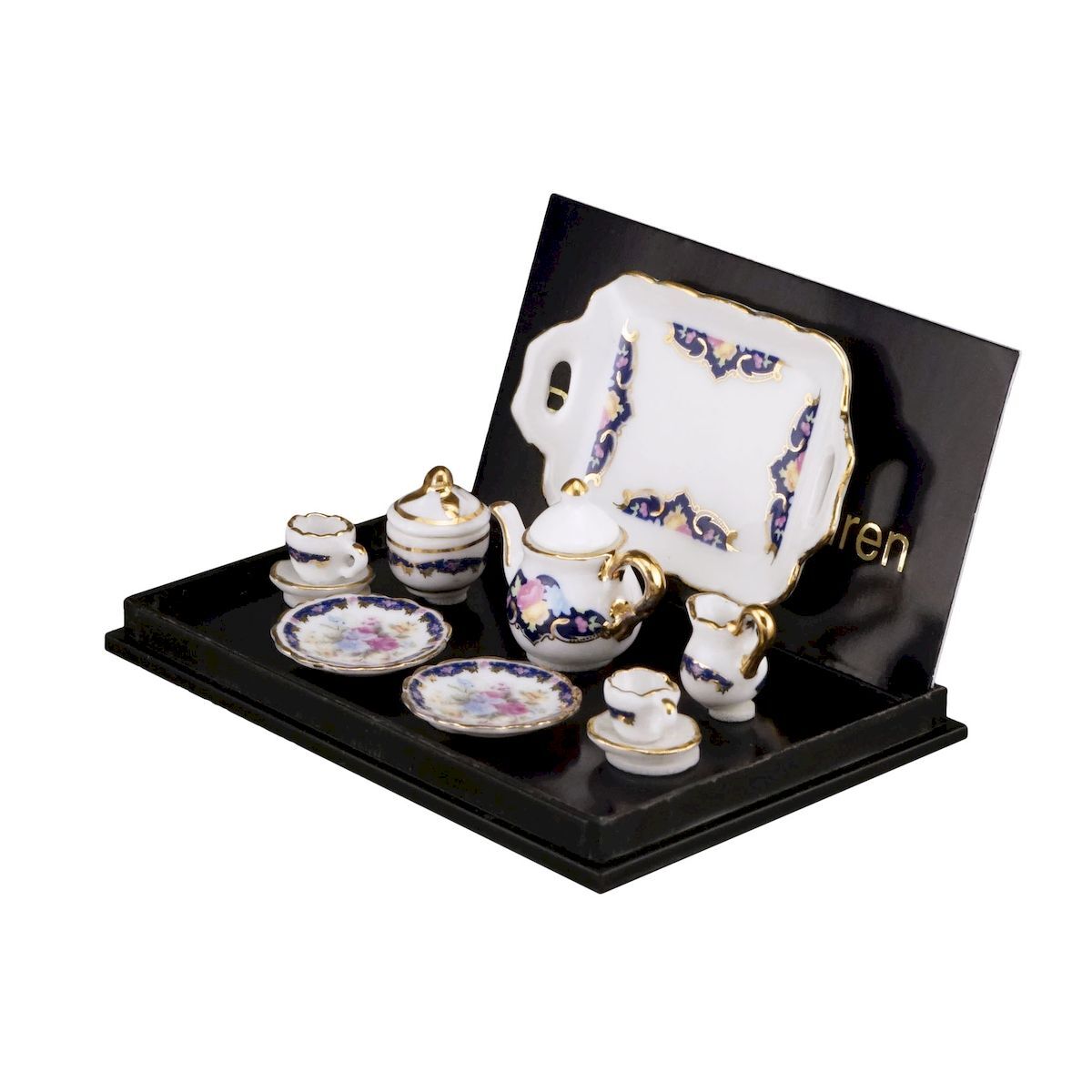 ドイツ ロイター社のミニチュアです。アクリルケース入りです。お皿の直径約20ミリ。ポットの蓋、カップとソーサーは接着されています。アクリルケースのサイズ:W80xD55xH48ミリ。