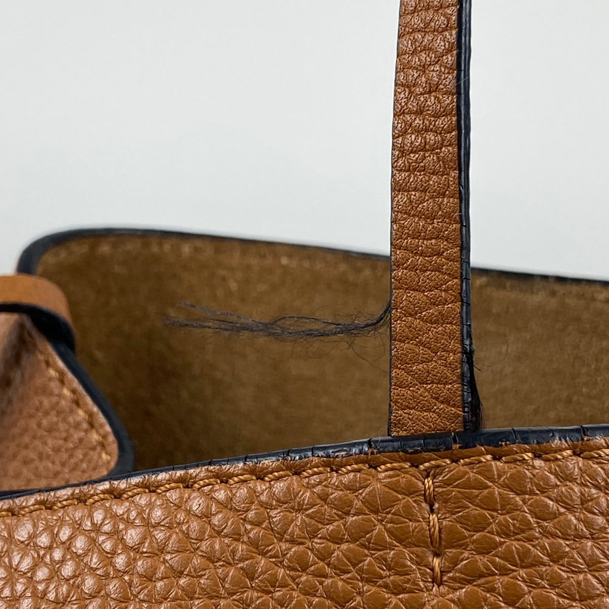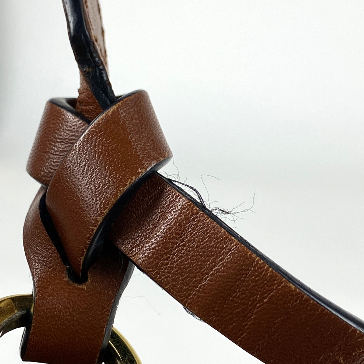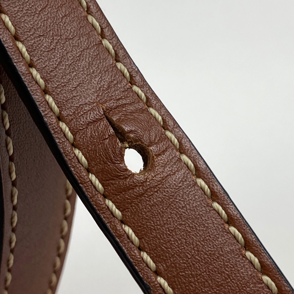 | 《全体》型崩れ、生活臭、汚れ 《外側》スレ、キズ 《内側》毛羽立ち、押し跡、剥がれ 《開口部》ひび割れ 《ショルダーストラップ》へたれ、押し跡 《金具》小キズ、くすみ 保存袋に劣化あり。 |