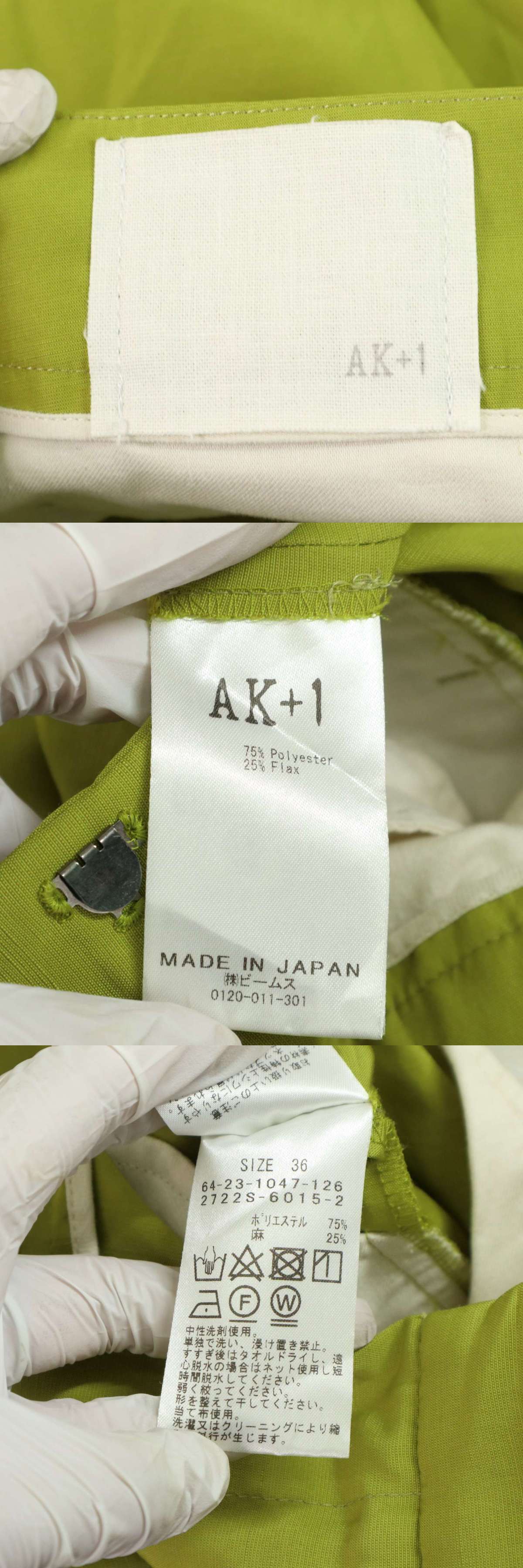 AK+1 エーケープラスワン 春夏★ 麻 テーパード アンクル センタープレス パンツ Sz.36 レディース