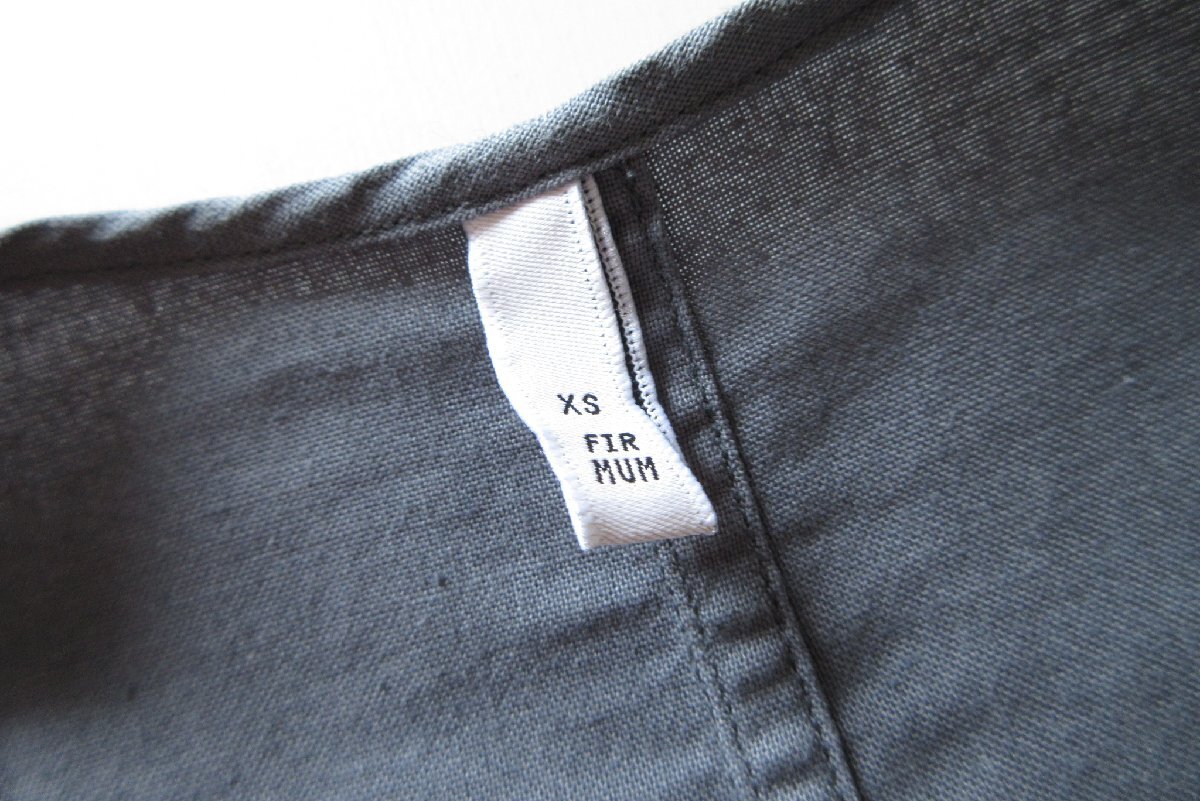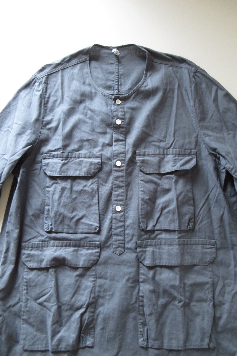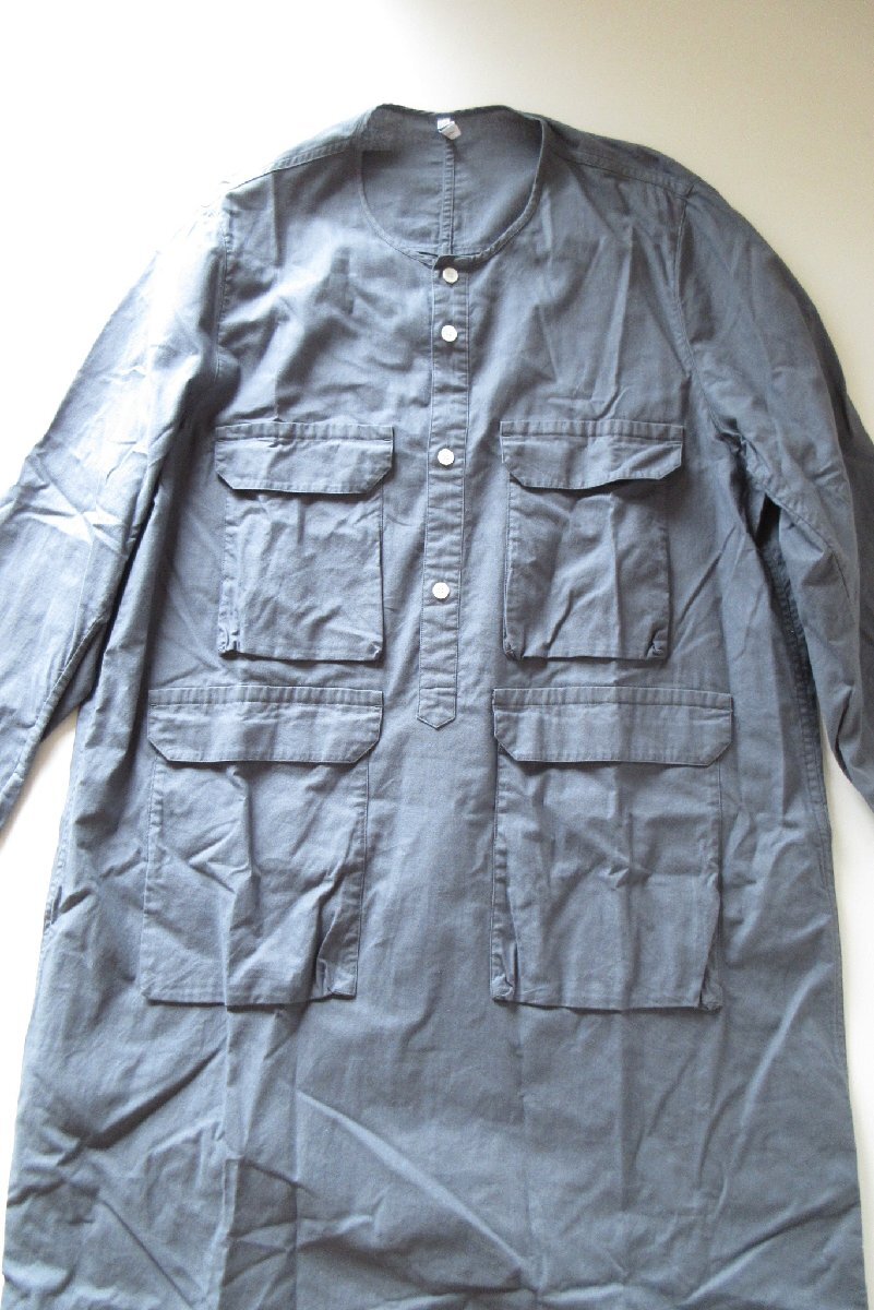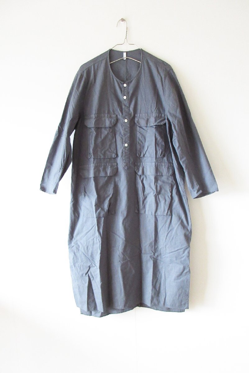 FIRMUM の ラフコットンシーチングノーカラーワンピース XS NAVY GRAYです。