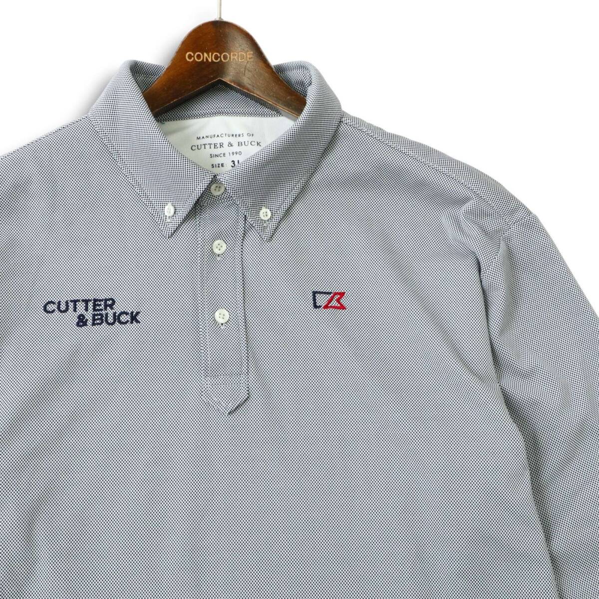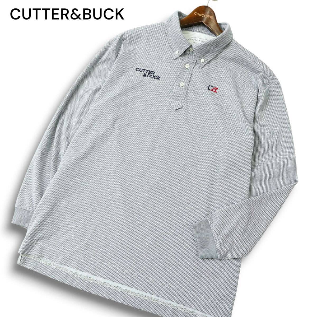 CUTTER&BUCK カッター&バック ゴルフ ロゴ刺繍★ 長袖 ボタンダウン ポロシャツ Sz.3L メンズ ネイビー 大きいサイズ 特大