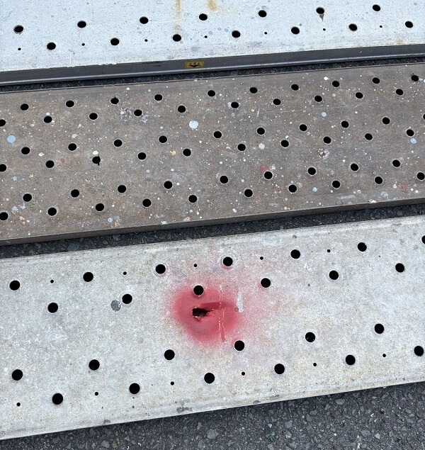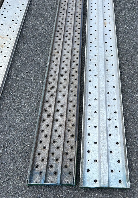 福岡発 在庫11枚有 4枚セット アルミ足場板 400㎝ 4m 24㎝ 厚み3㎝ 約10㎏ 片面使用型 高所作業 建築資材 軽量