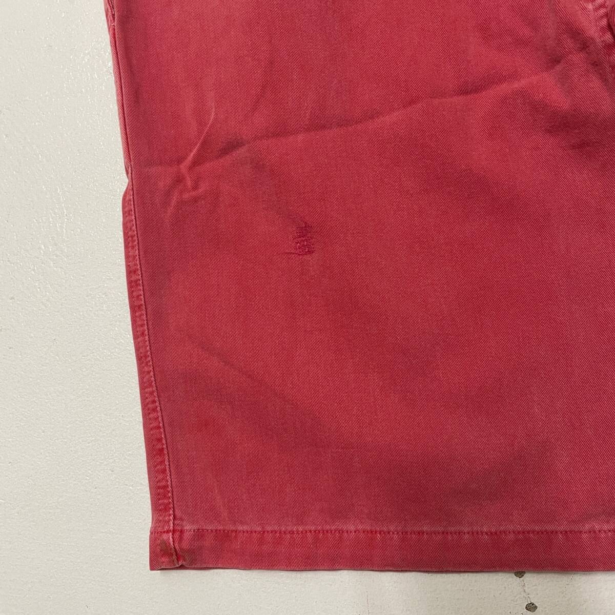 アメリカ古着になります。 90年代のビンテージです。 コットンチノ、フェードしたピンクのGOODカラーです。 海外ボーイズサイズなので着用感メンズSサイズ程度になります。 両サイドポケット、バックポケットなし。 ウエストにはウェビングベルト、股下ガゼット付きです。 洗濯済みになります。お探しの方におすすめです。 | |||