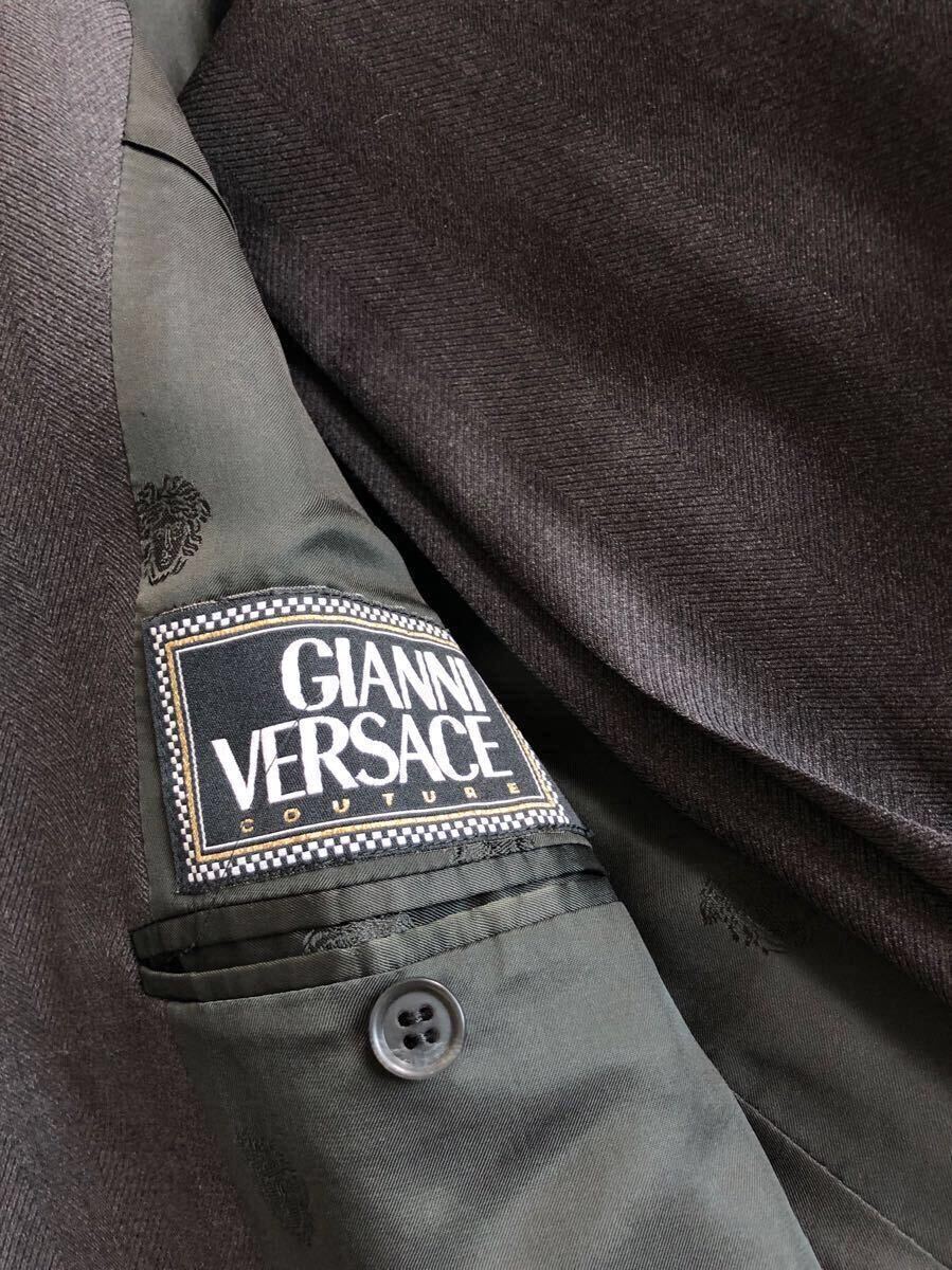 Gianni Versace Couture 織柄チャコールグレー 3Bスーツ