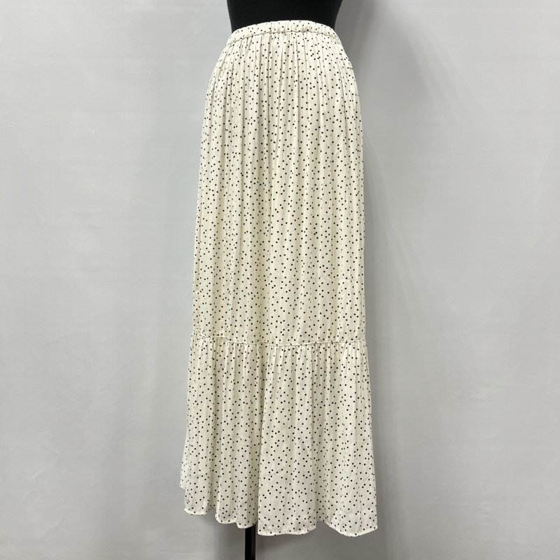 ●SIMPLICITE/シンプリシテェ/ウエストゴムギャザー/ドット ティアードフレアスカート/イージースカート/ふんわりシルエット/ホワイト