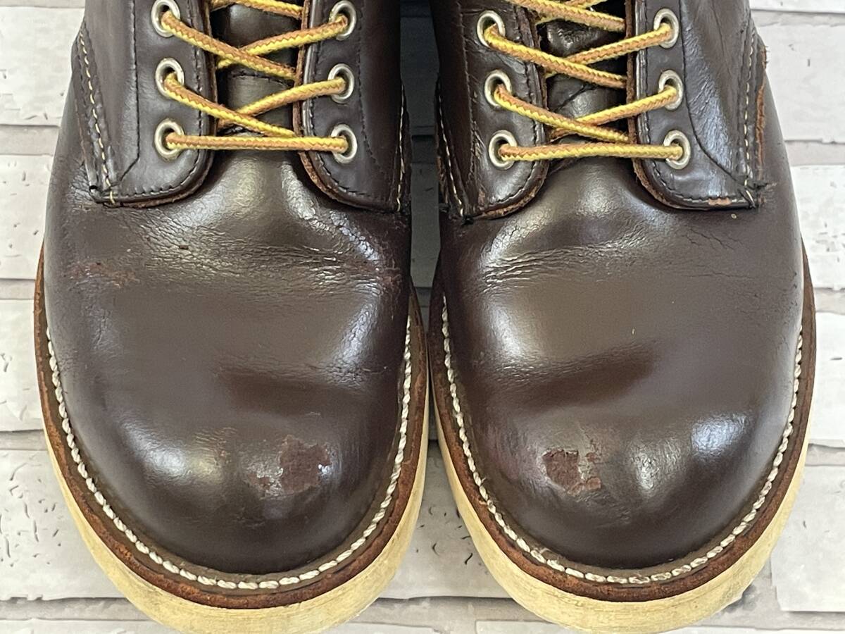 両つま先部分にキズ、表面めくれ、スレ、色落ちがあります。